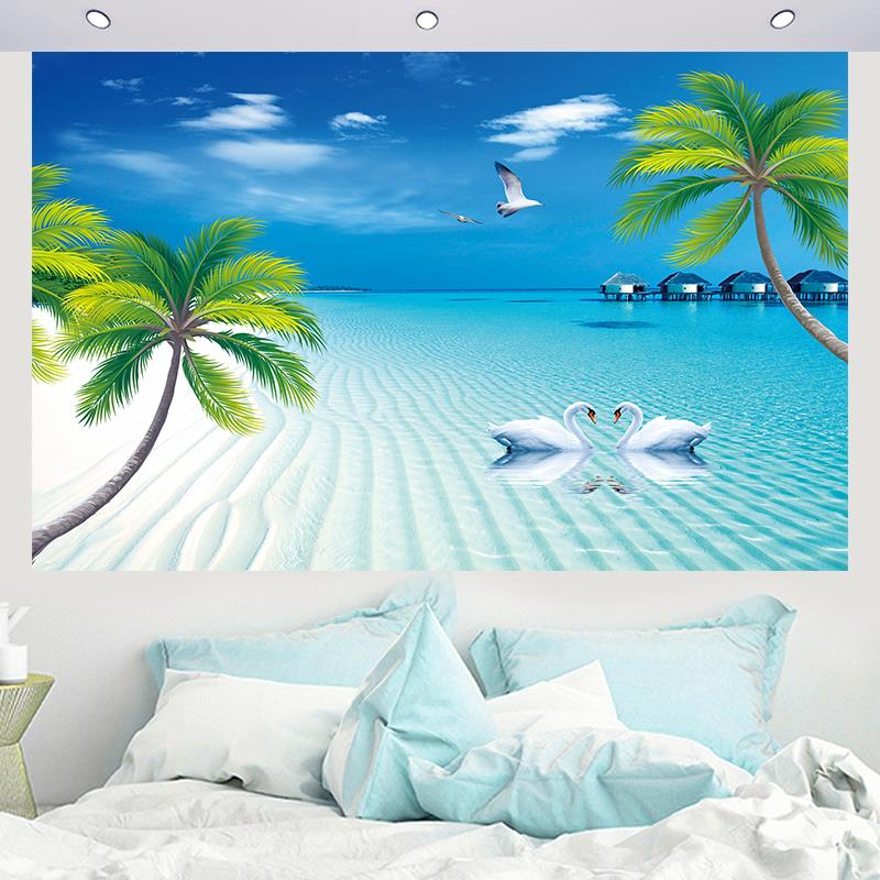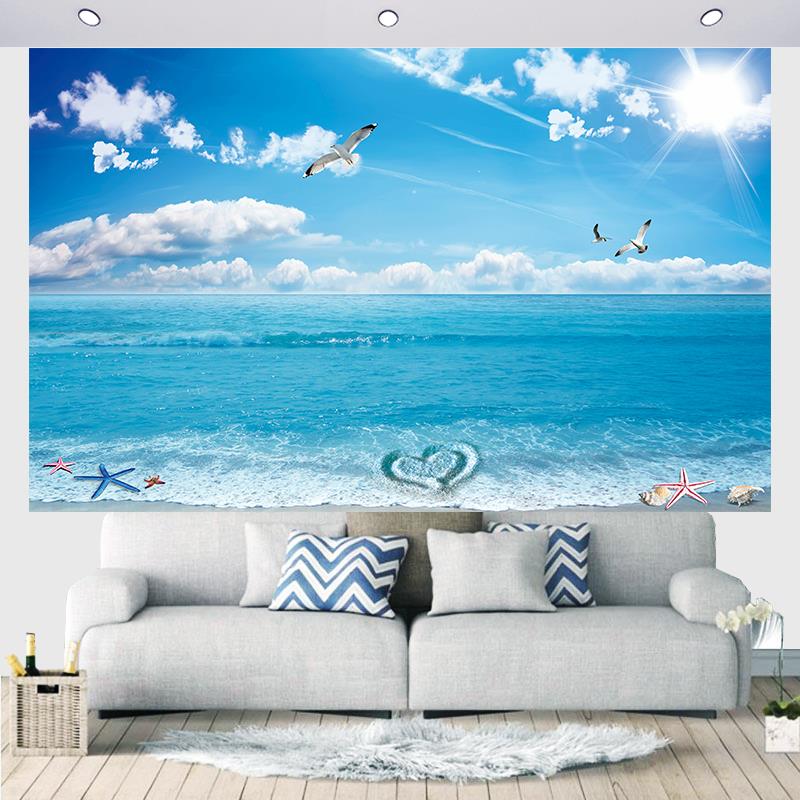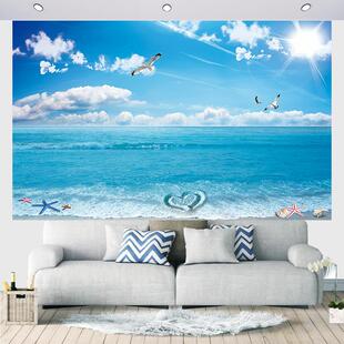 墙贴纸自粘贴画大海沙滩壁纸海景房卧室客厅沙发背景墙纸装 饰壁画