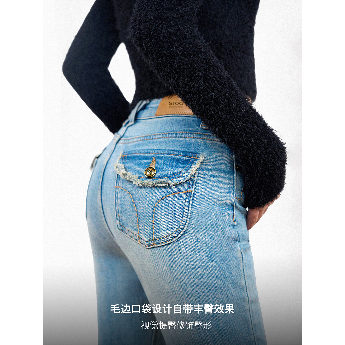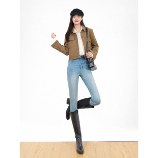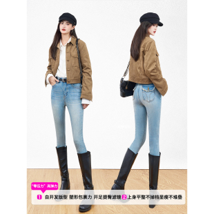 女翘臀小脚裤 SJOG蜜桃臀加绒显瘦提臀靴裤 弹力紧身九分牛仔裤