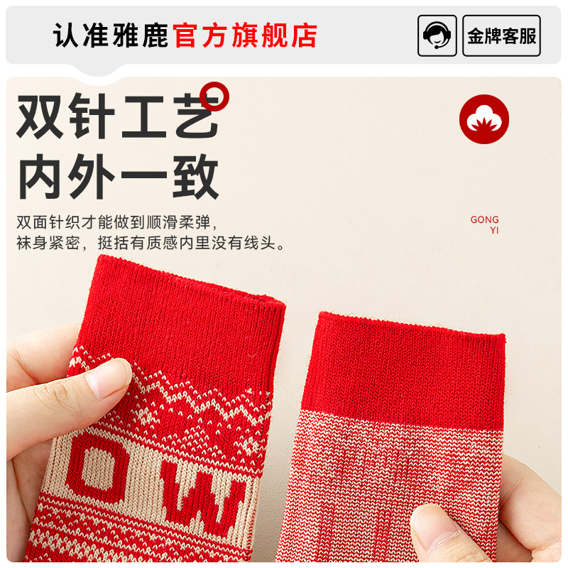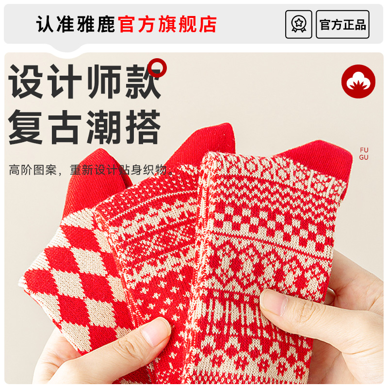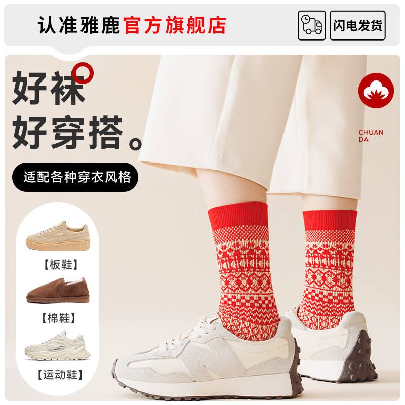 雅鹿本命年红袜子女款 中筒袜秋冬蛇年新年结婚红色女士长袜多规格