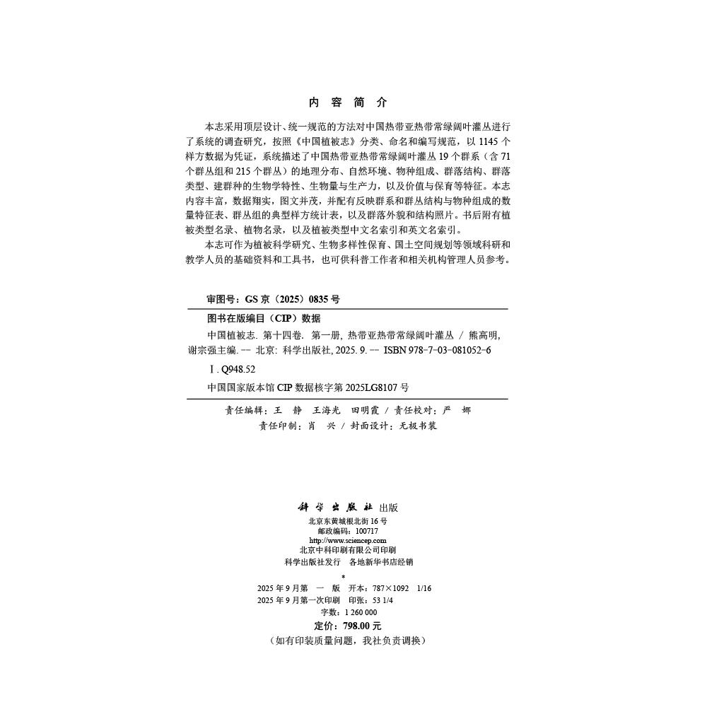 热带亚热带常绿阔叶灌丛 第一册 9787030810526 第十四卷 中国植被志