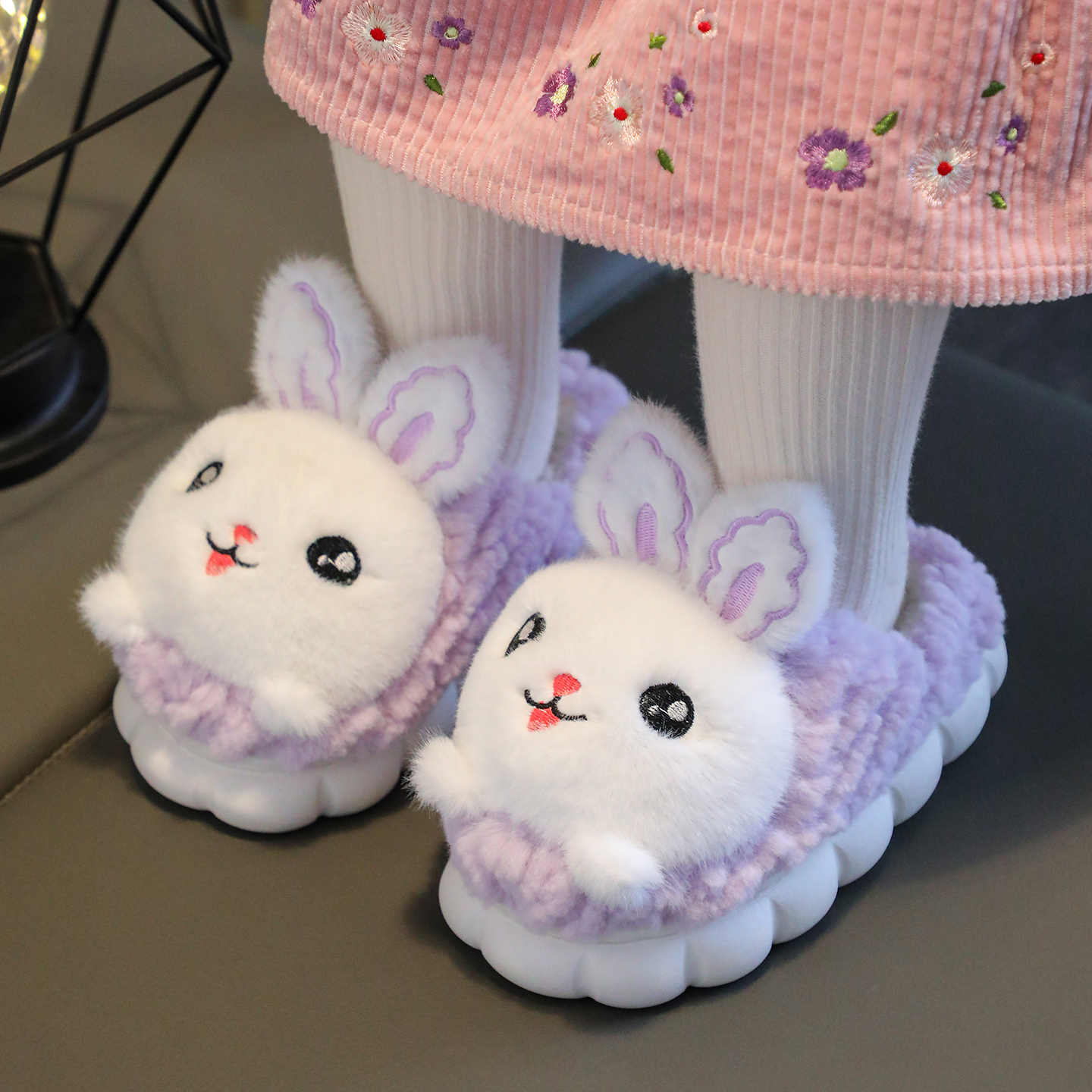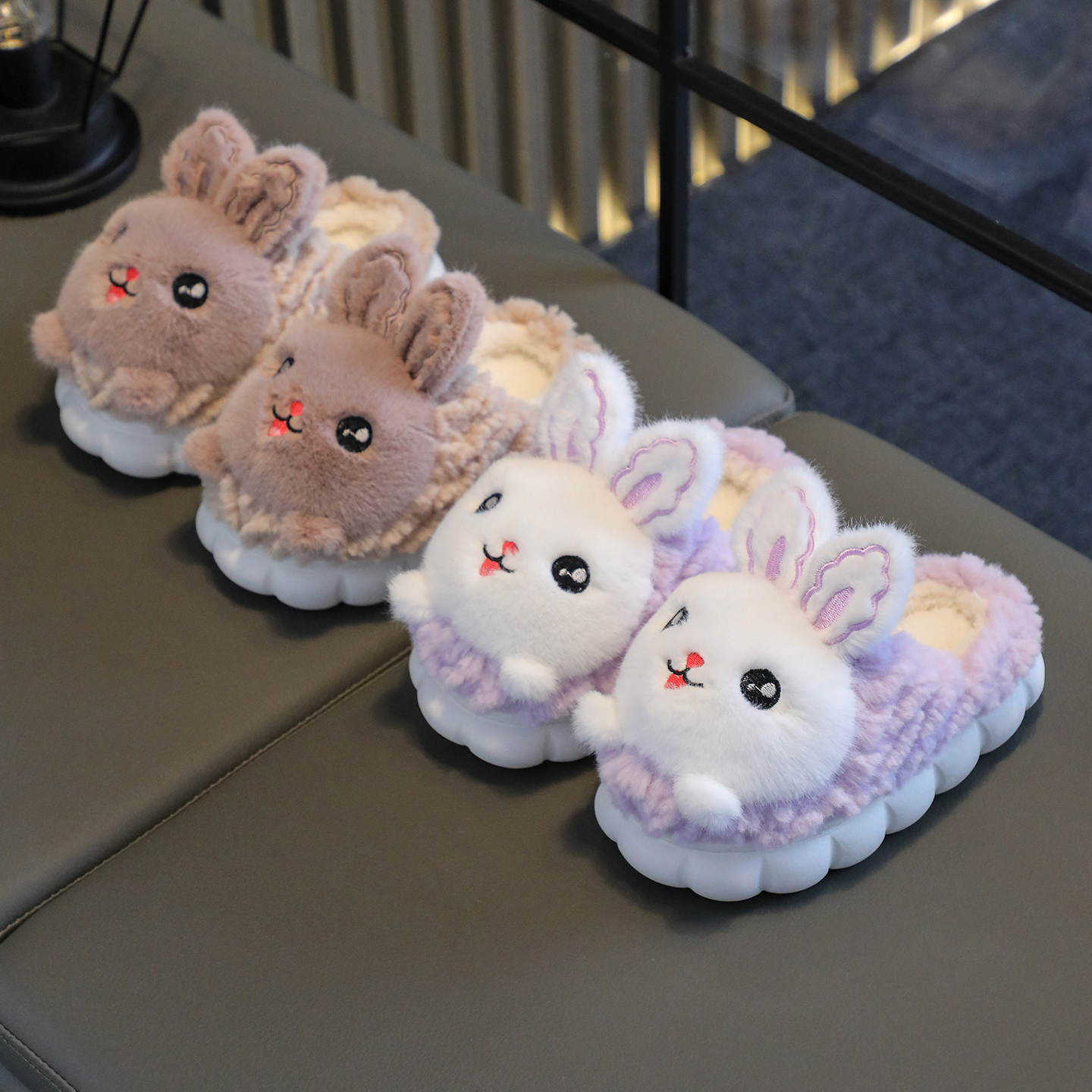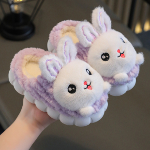 毛绒加绒加厚男女童可爱室内居家防滑保暖亲子棉拖鞋 冬季 儿童拖鞋