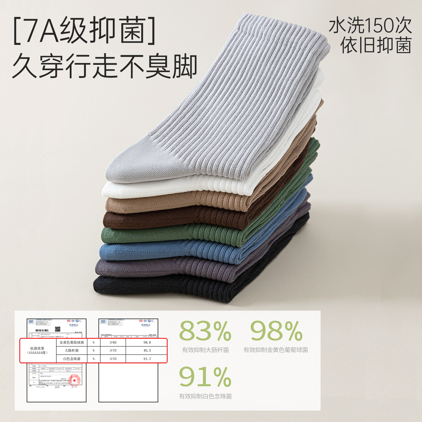 袜子男款 秋冬中筒袜抗菌防臭棉袜袜运动吸汗7A抗菌商务袜 纯棉男士
