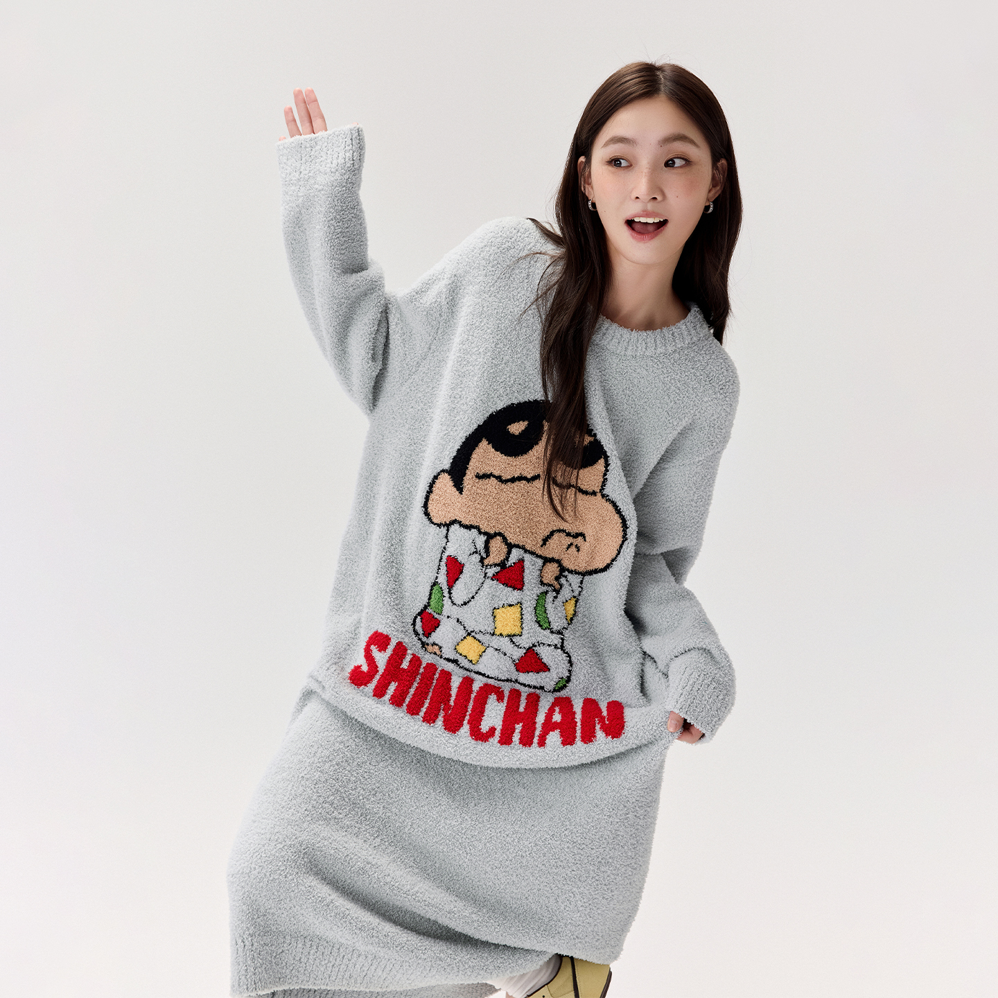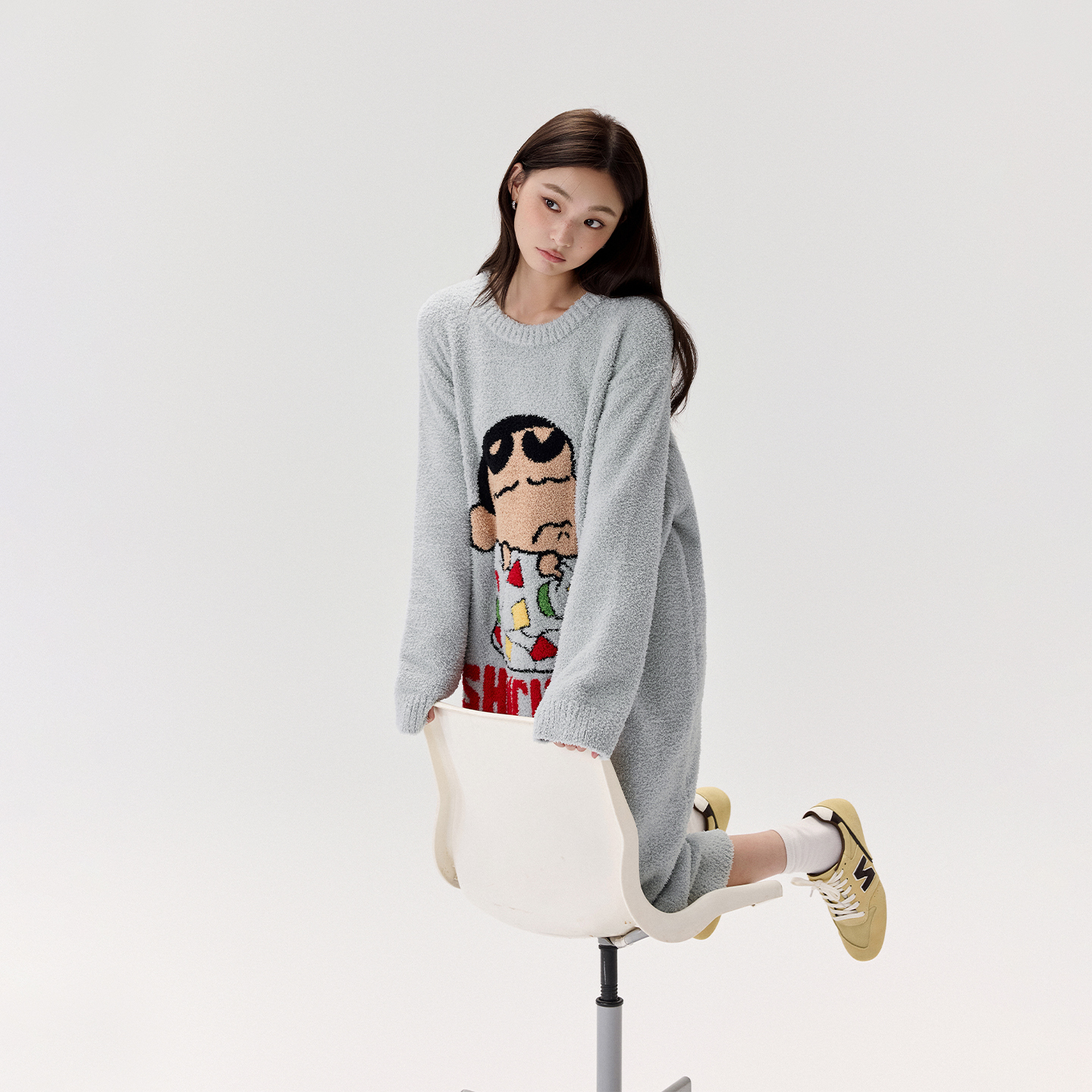 女 半边绒可外穿卡通睡袍睡衣睡裙家居服秋冬季 亲嘴猫 蜡笔小新
