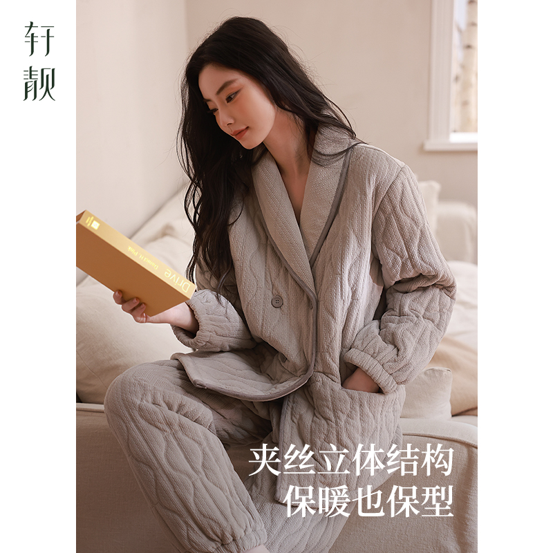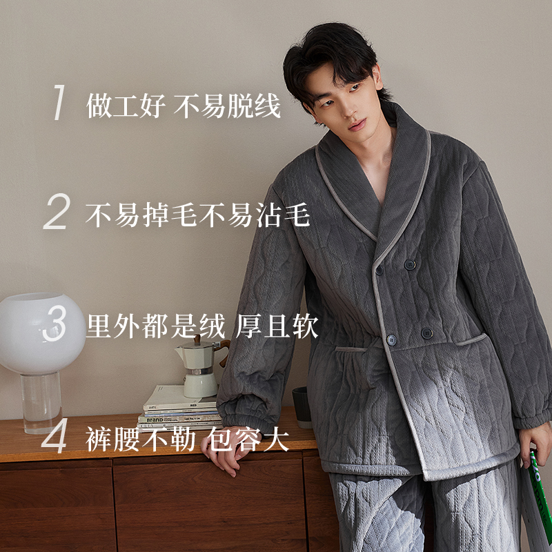 珊瑚绒家居服套装 三层加厚夹棉袄男士 睡衣女秋冬季 轩靓情侣新中式