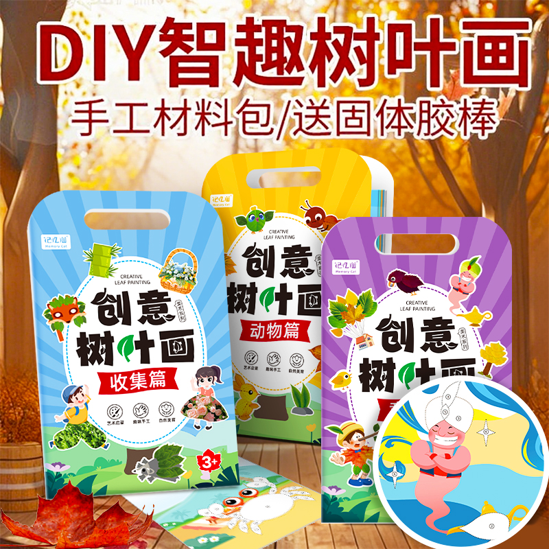 儿童创意树叶画手工diy制作材料包幼儿园自己做粘贴玩具立体贴画