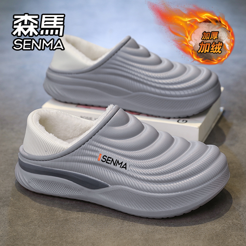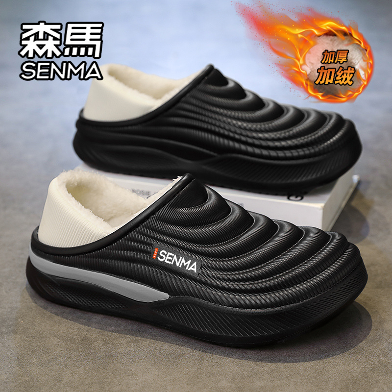 男款 居家外穿踩屎感包头拖鞋 冬季 男士 加绒保暖包跟棉鞋 森马棉拖鞋