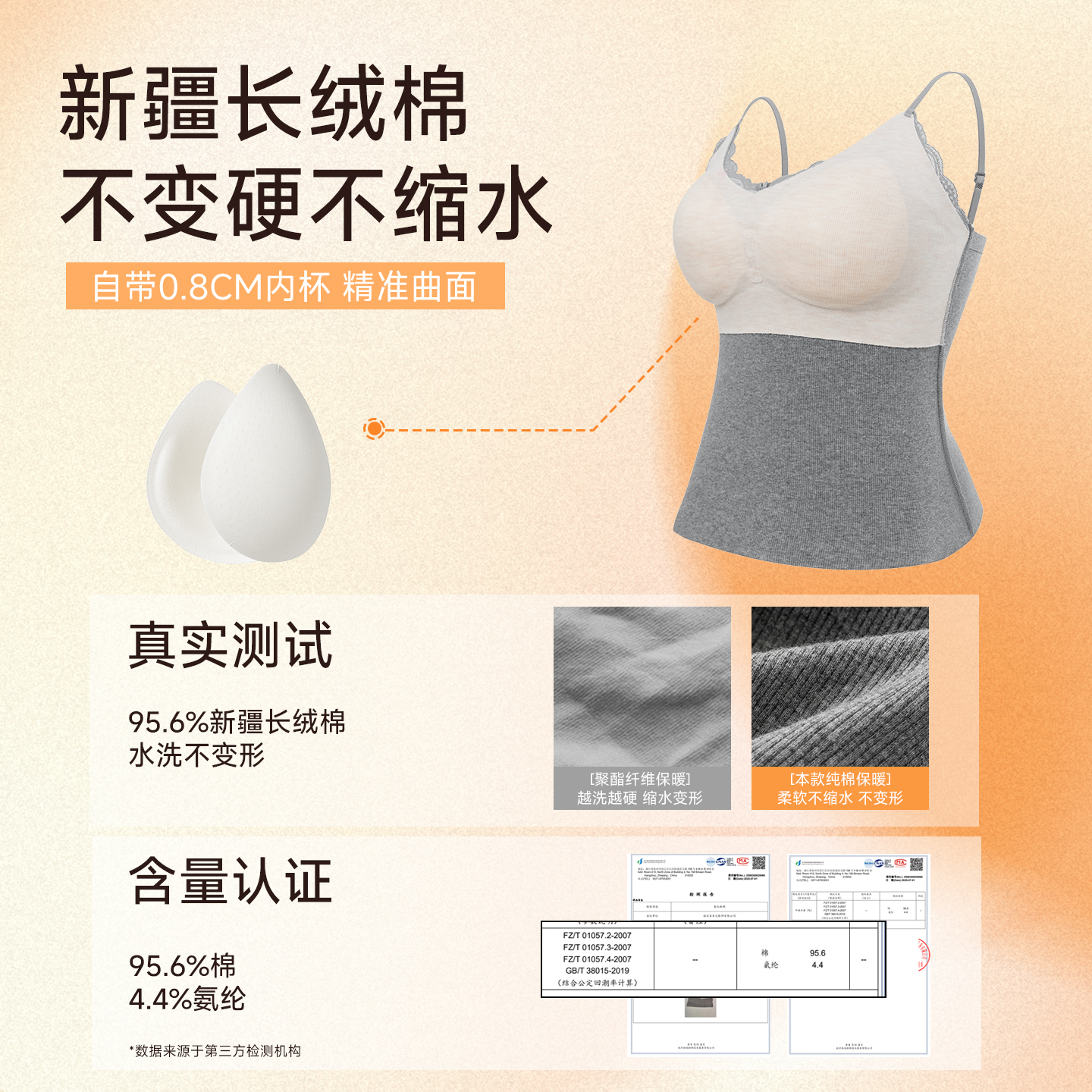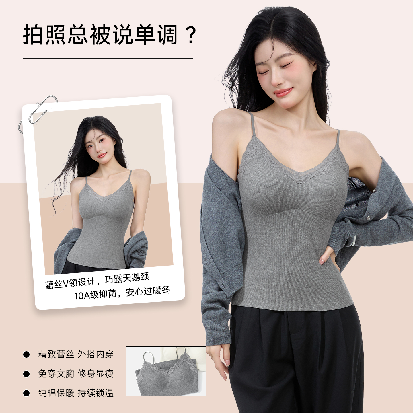 猫人保暖吊带背心女2025新款 纯棉磨毛带胸垫无痕打底秋冬内搭外穿