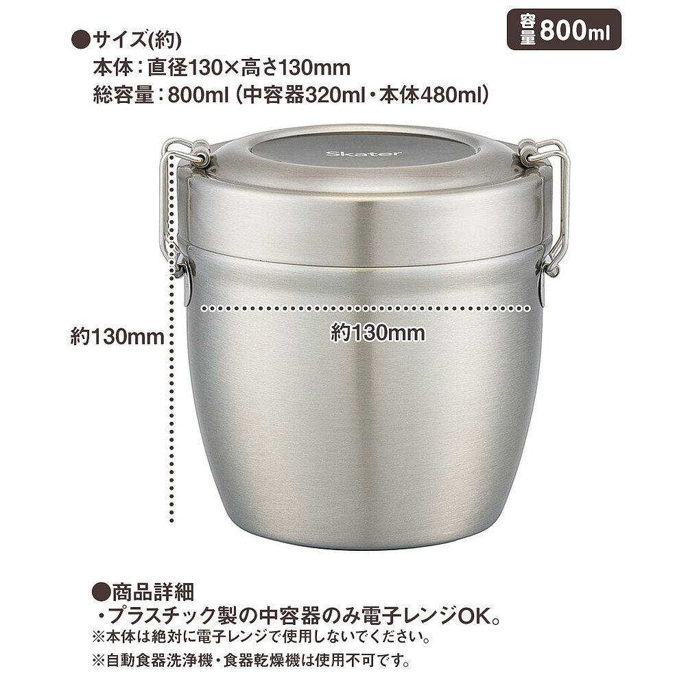 日本直邮抗菌真空密封不锈钢午餐盒容量 毫升双层保温午餐罐S 800