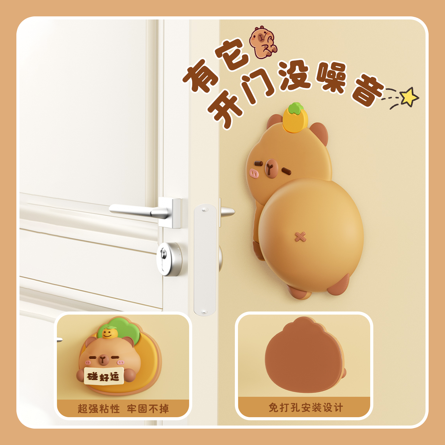 卡皮巴拉门把手防撞贴硅胶静音垫冰箱防碰撞柜门后挡神器墙免打孔