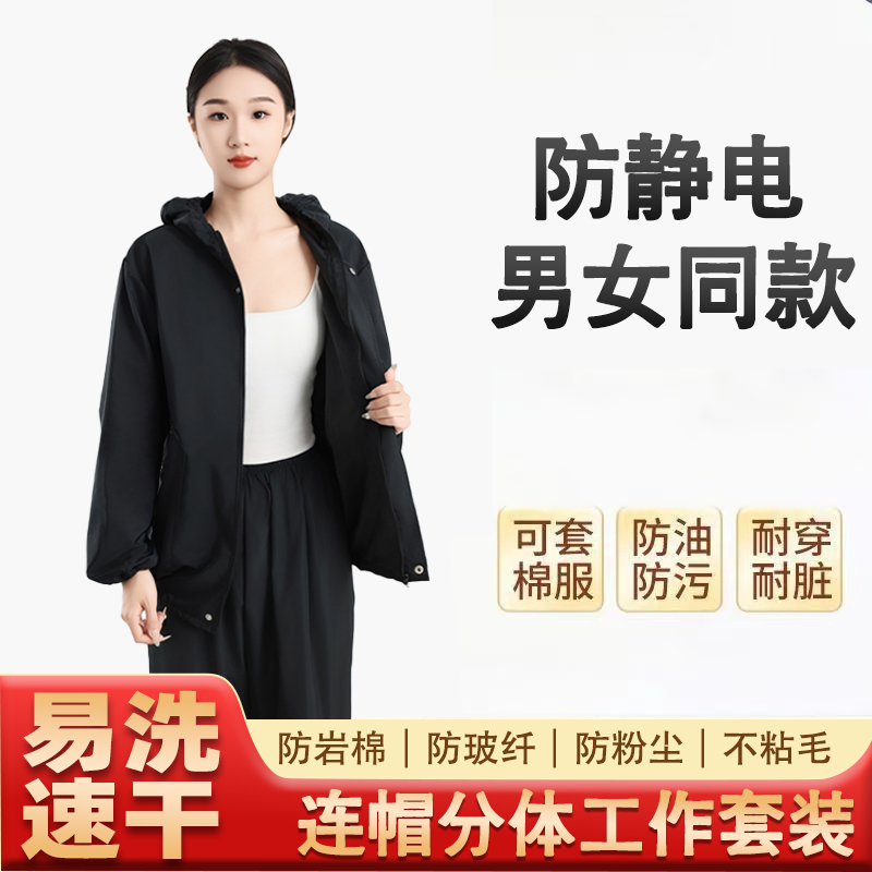分体防灰尘工作服连帽长款 防护尘服 宽松尘衣服加大耐脏男女套装