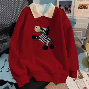卡通印花卫衣女 设计感宽松长袖 慵懒风2025潮牌胖mm美式 圆领大码