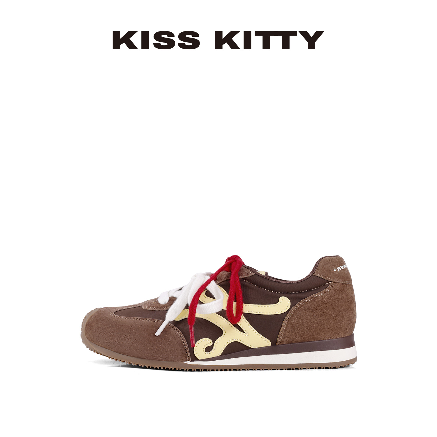 红色运动休闲阿甘鞋 德训鞋 百思图小彩糖25秋新款 女 张予曦同款