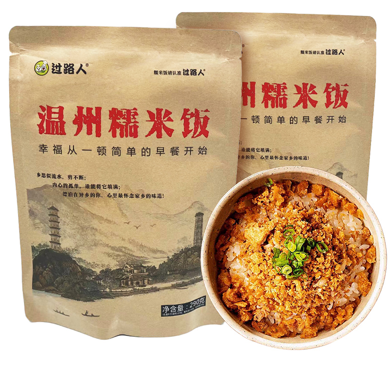 过路人温州糯米饭290g袋生烫肉早餐油条方便米饭袋装 温州特产