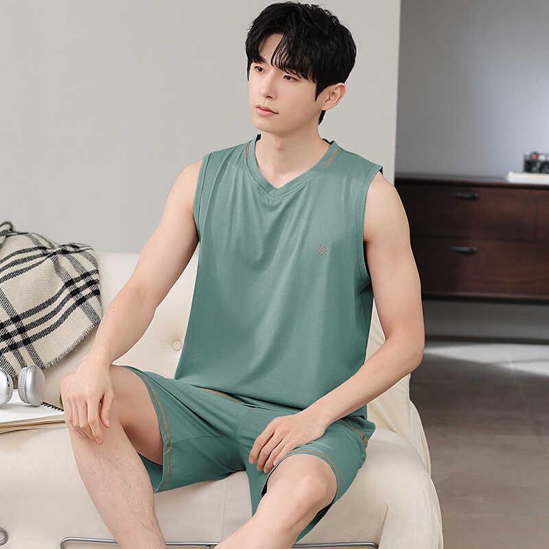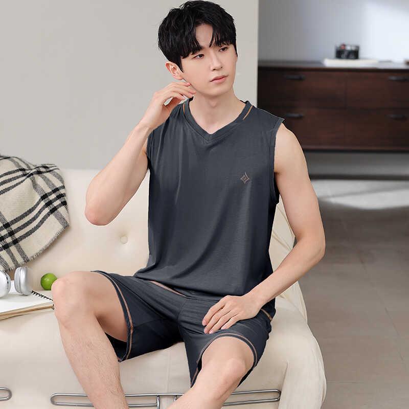 凉感冰丝大码 宽松休闲纯色背心短裤 家居服 睡衣夏季 好货莫代尔男士