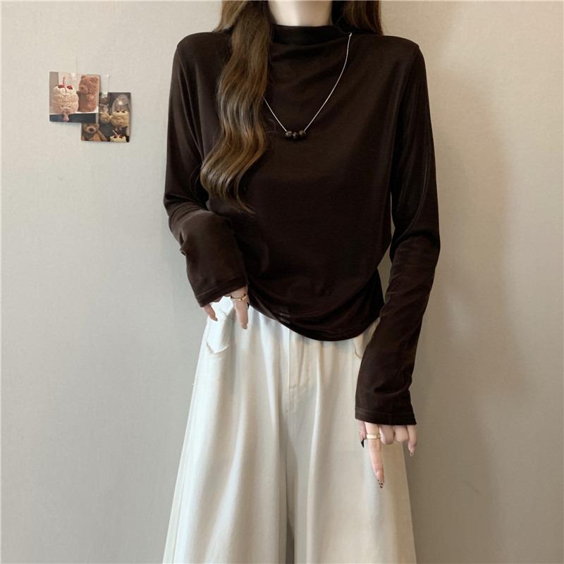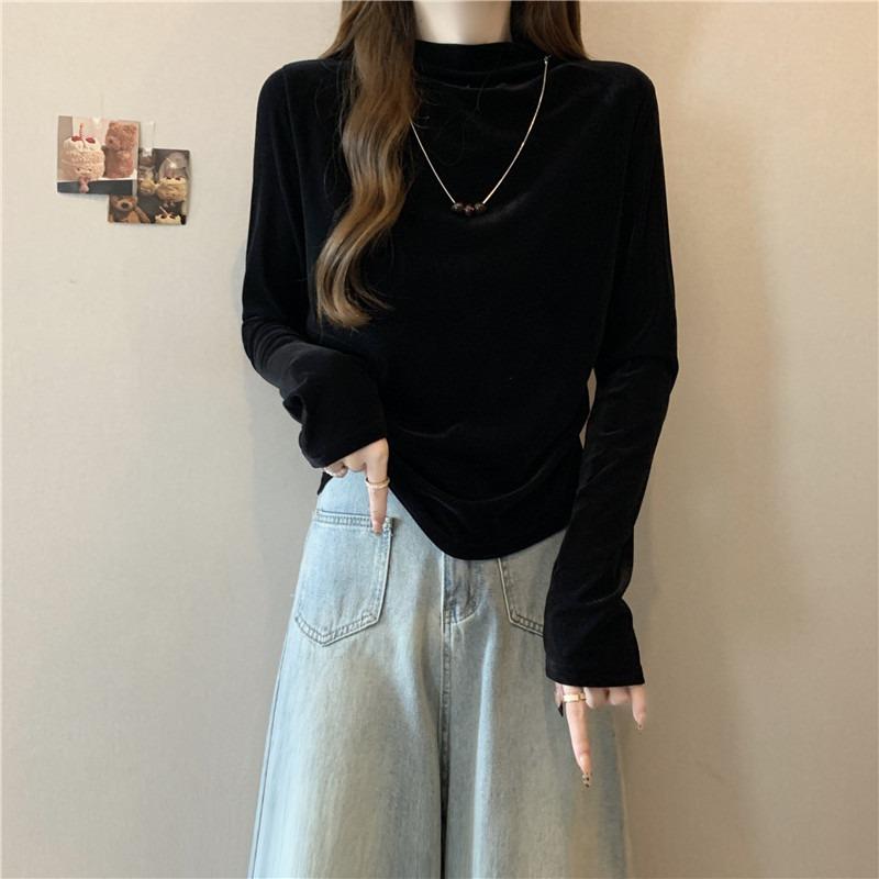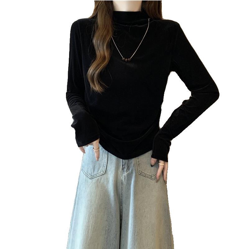 胖mm内搭打底衫 女装 半高领上衣1012z T恤大码 秋冬金丝绒正肩长袖
