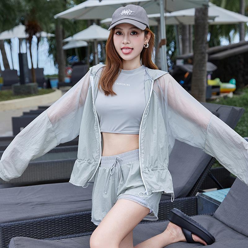 2025新款 外套比基尼户外运动泳1005c 游泳衣女分体平角三件套长袖