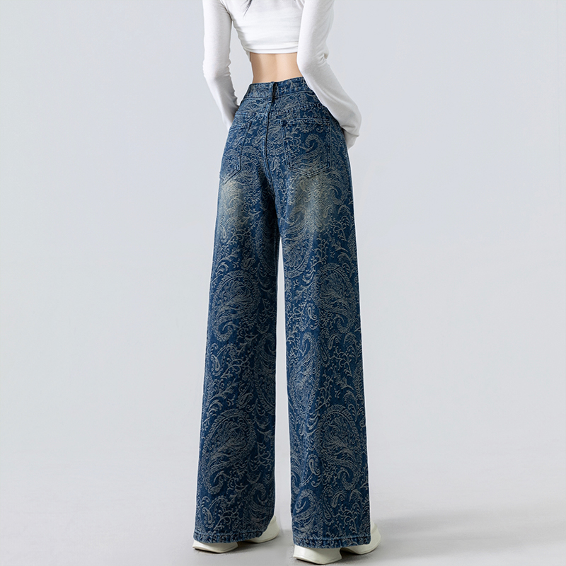 高街潮牌宽松痞帅直筒阔腿长裤 美式 新款 男2025春秋季 子 水洗牛仔裤