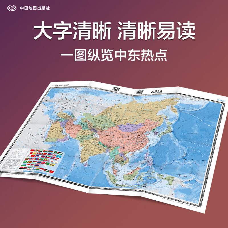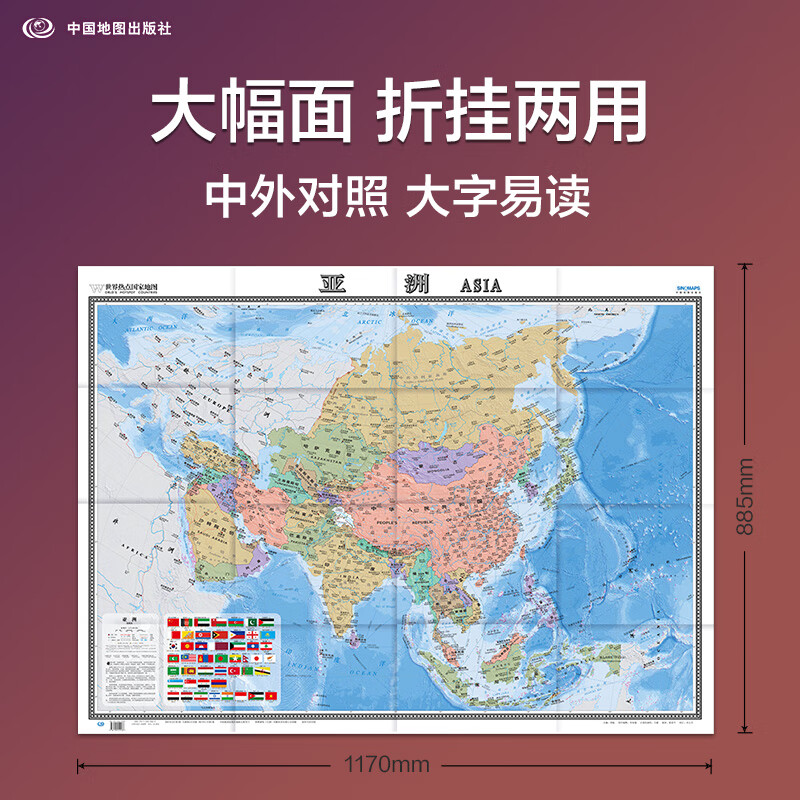 大字中英文对照 1.17米X0.86米 世界热点国家地图 便携贴图折挂两用 亚洲地图