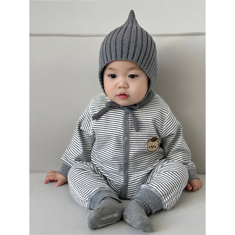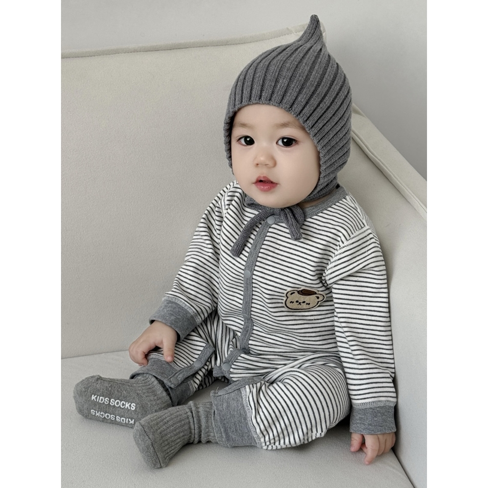 童泰款 哈衣纯棉爬服初生儿条纹外出服小月 春秋婴儿连体衣宝宝长袖