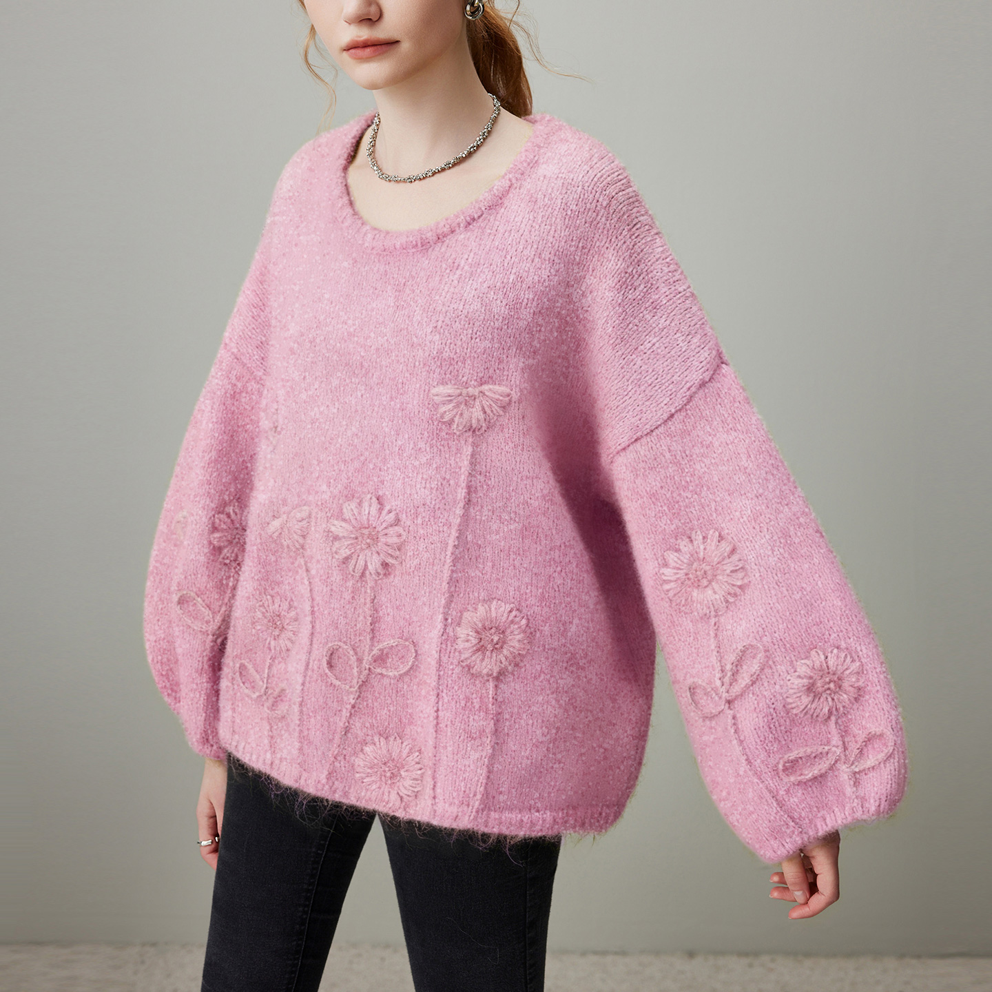 高级感上衣宽松打底针织衫 圆领100%纯山羊绒衫 女高端毛衣秋冬新款