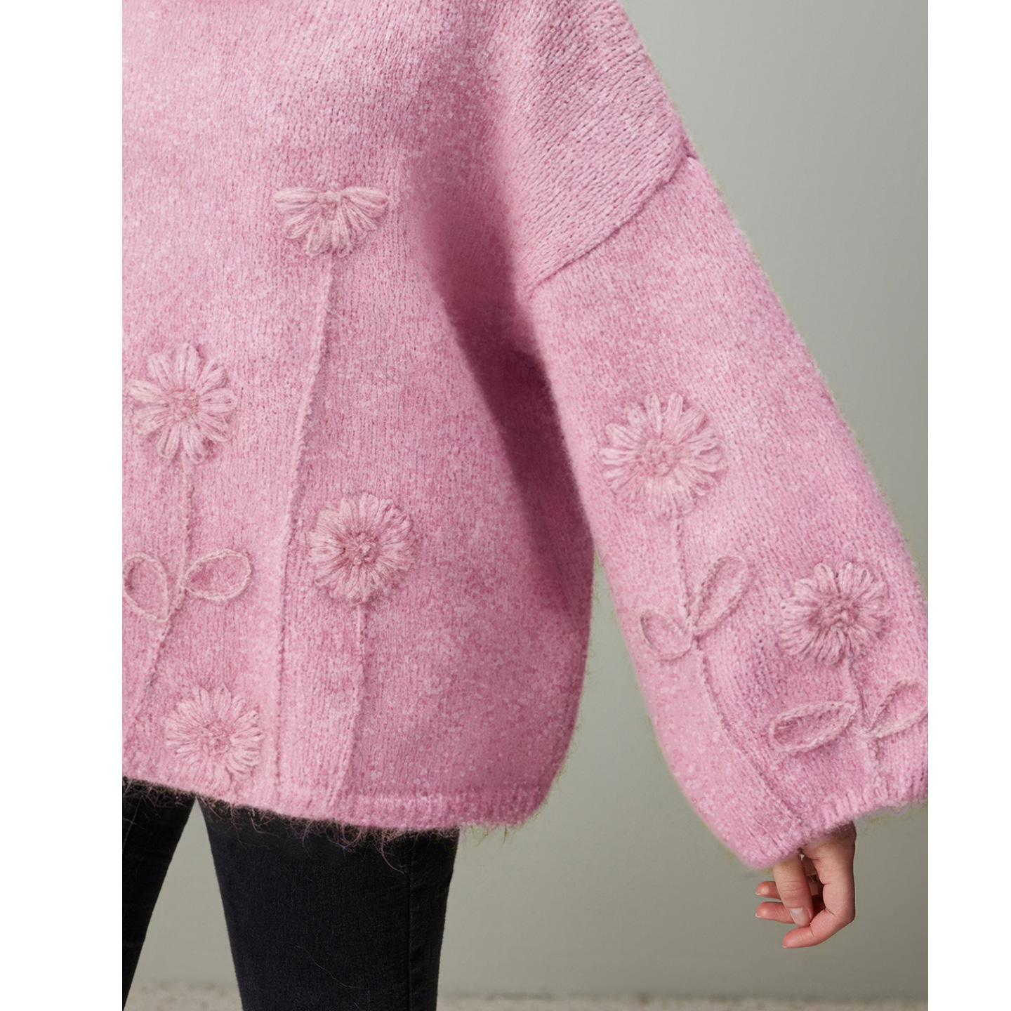 唐狮2025秋冬英伦风刺绣针织开衫 女毛衣外套高级感简约气质上衣女