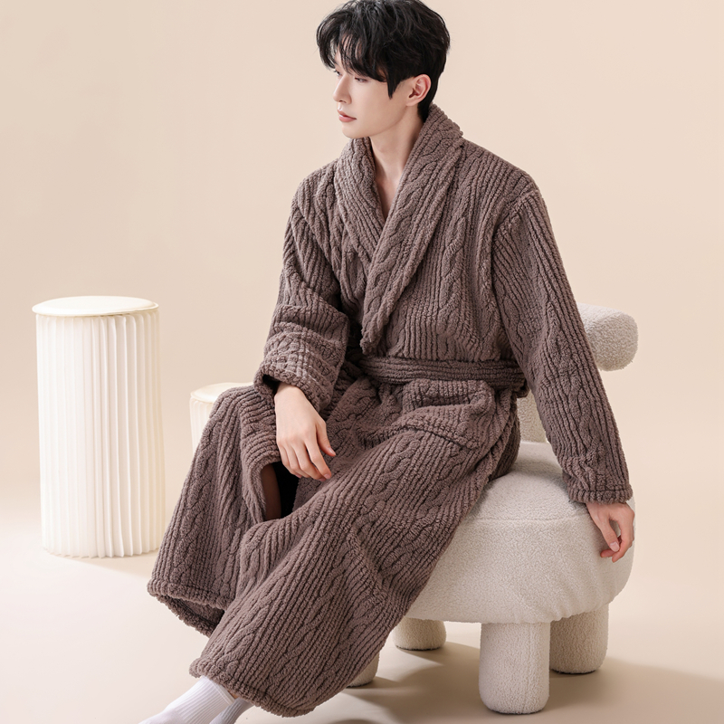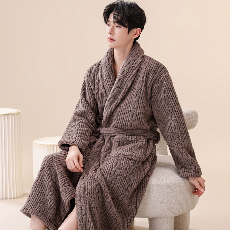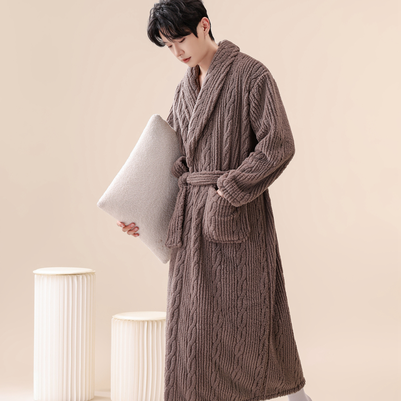 浴袍男款 睡衣加厚珊瑚绒睡袍男士 晨袍法兰绒套装 春秋款 长袍 秋冬季