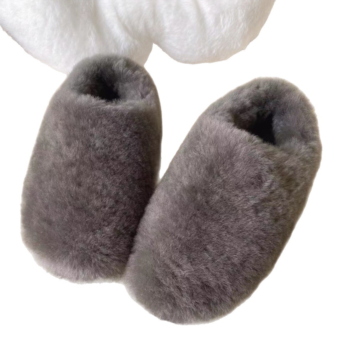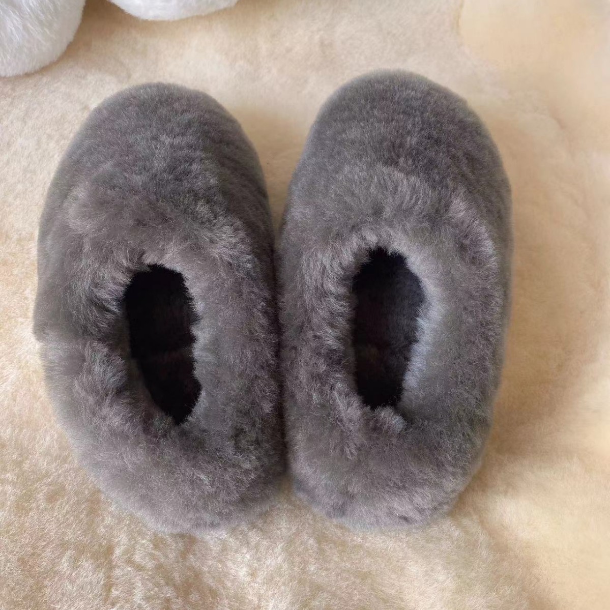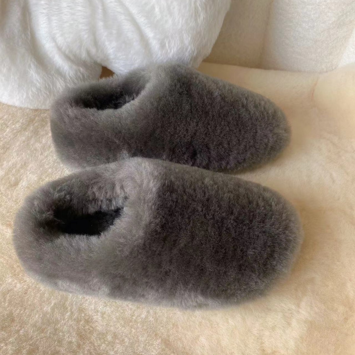 新款 防滑厚底包头拖居家情侣雪地靴 女士保暖舒适羊毛拖鞋