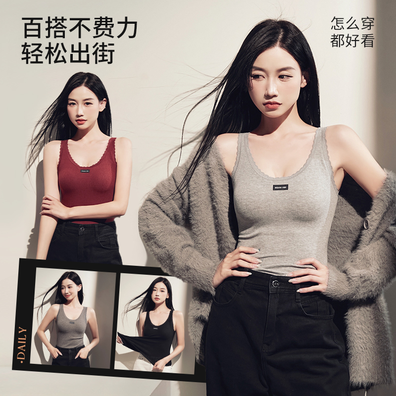 草本初色保暖背心女带胸垫秋衣2025新款 内搭肌底衣 秋冬吊带打底衫