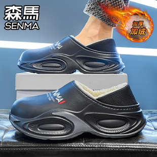 男款 45拖鞋 冬季 外穿防水防滑大码 加绒保暖包跟休闲棉鞋 森马棉拖鞋