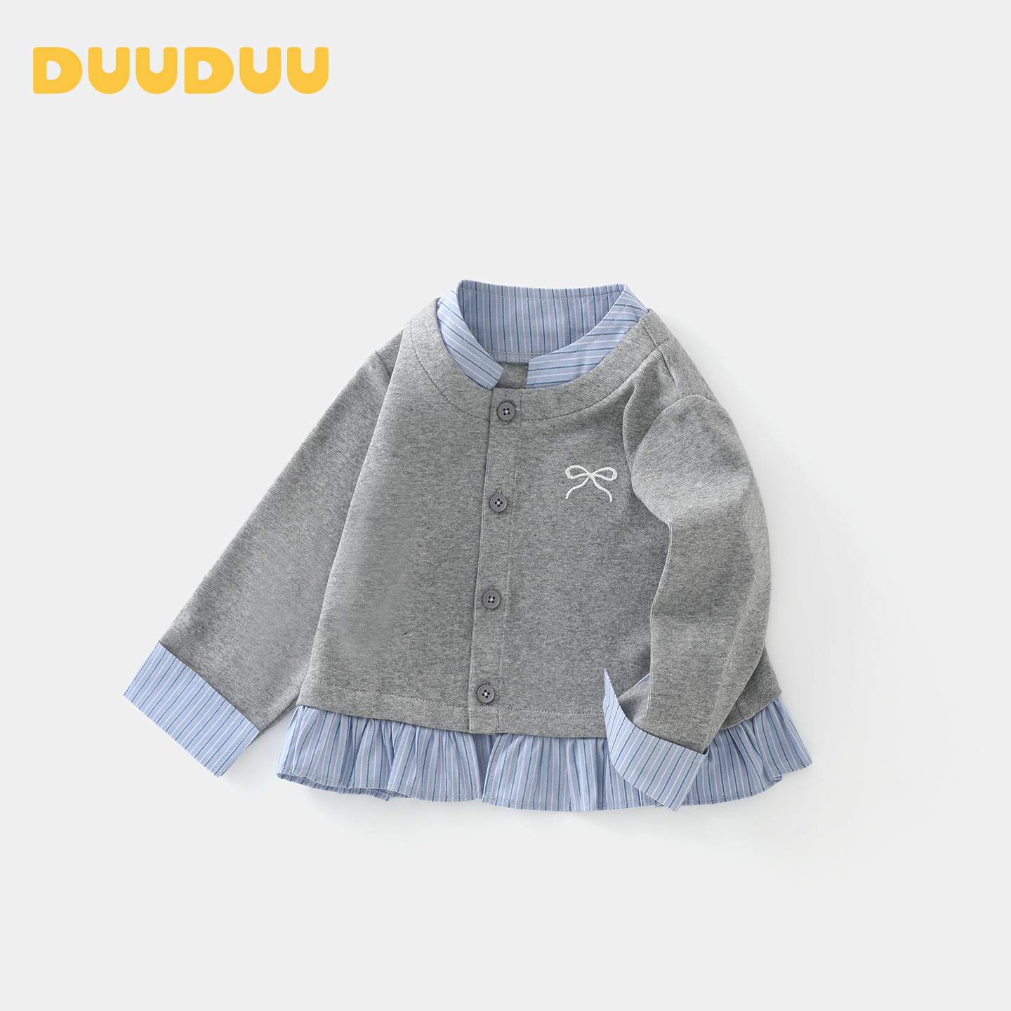 外出服 婴儿秋装 DUUDUU小童潮流假两件外套春秋季 衣服宝宝针织衬衫