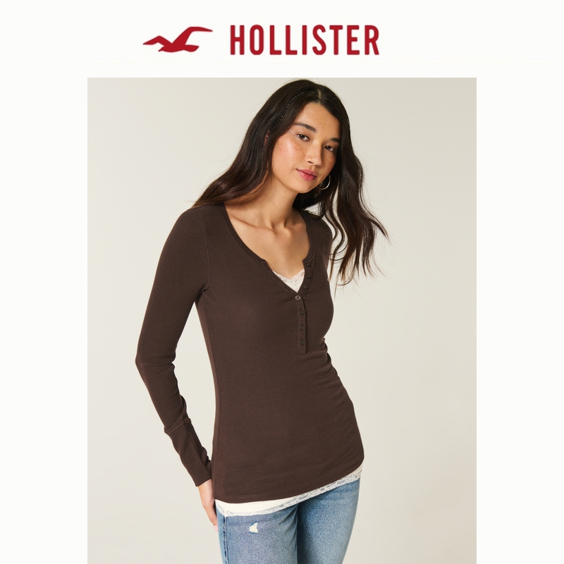 339 T恤女装 5257 撞色亨利领长袖 Hollister小海鸥图案25秋冬新款