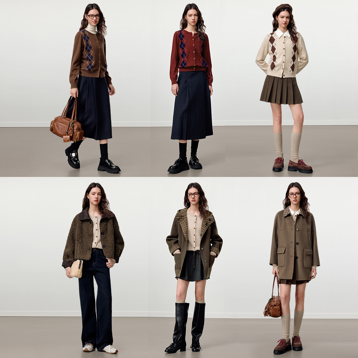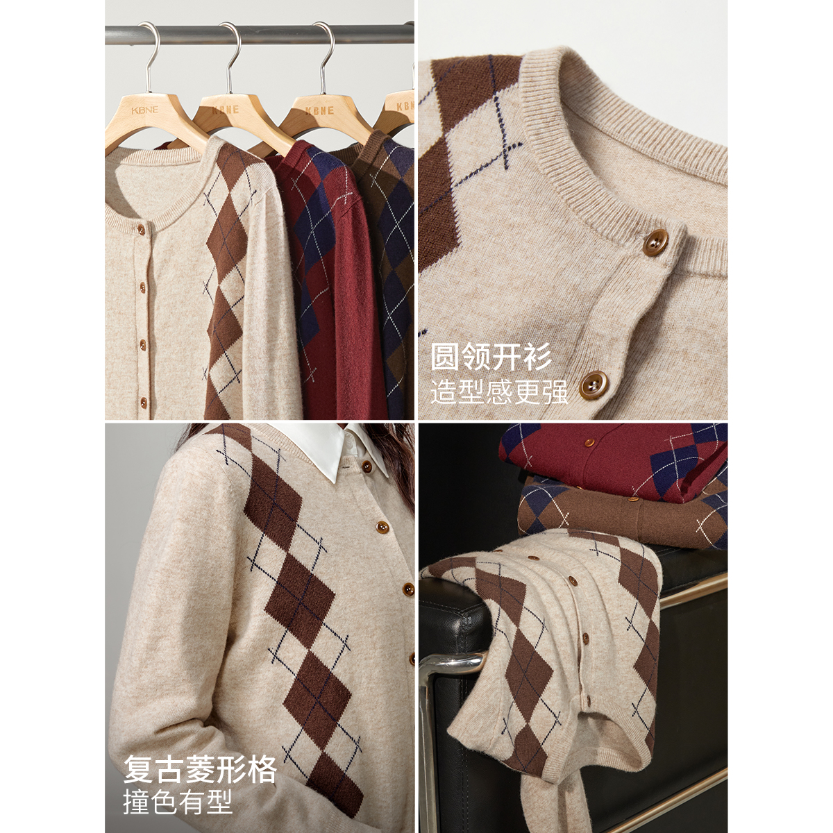 圆领针织衫 羊毛衫 女2025冬季 长袖 上衣 新款 KBNE复古学院风菱格短款