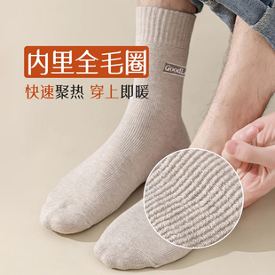 袜加绒毛圈居家地板袜 加厚保暖男士 超厚羊毛袜子男款 中筒袜秋冬季