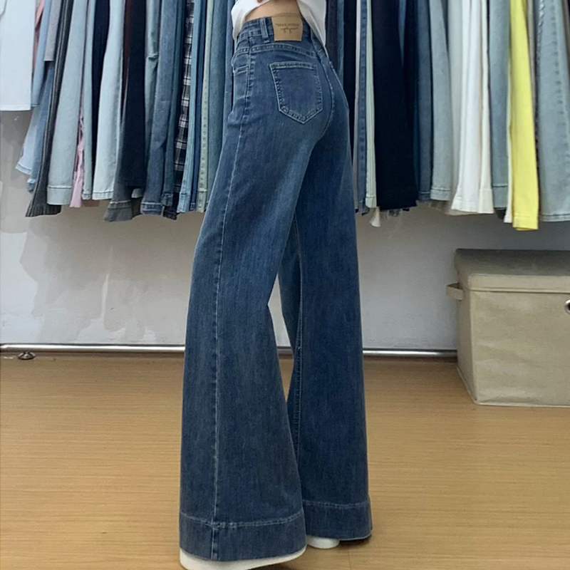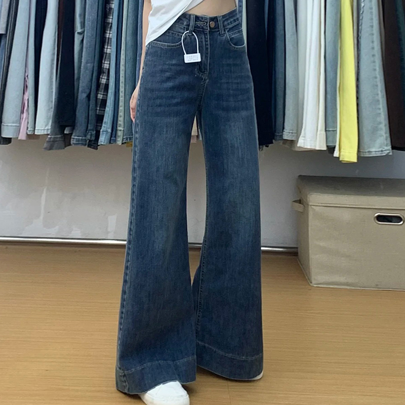 复古高腰宽松显瘦显高阔腿长裤 逸阳窄版 新款 女2025秋季 直筒牛仔裤