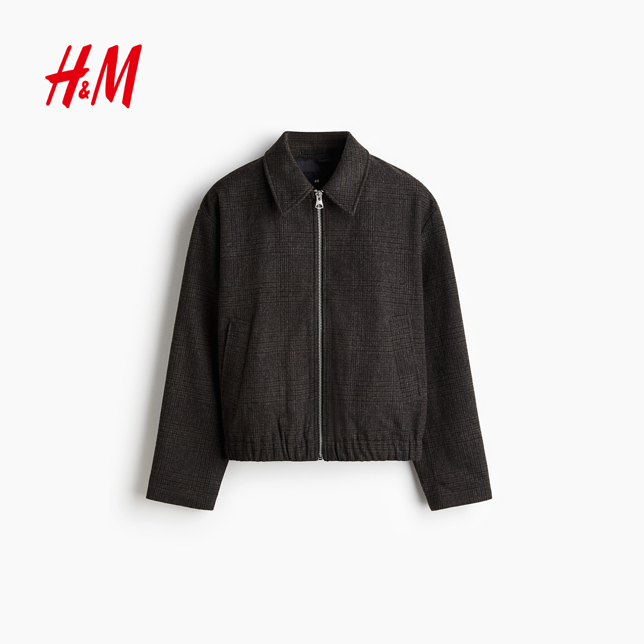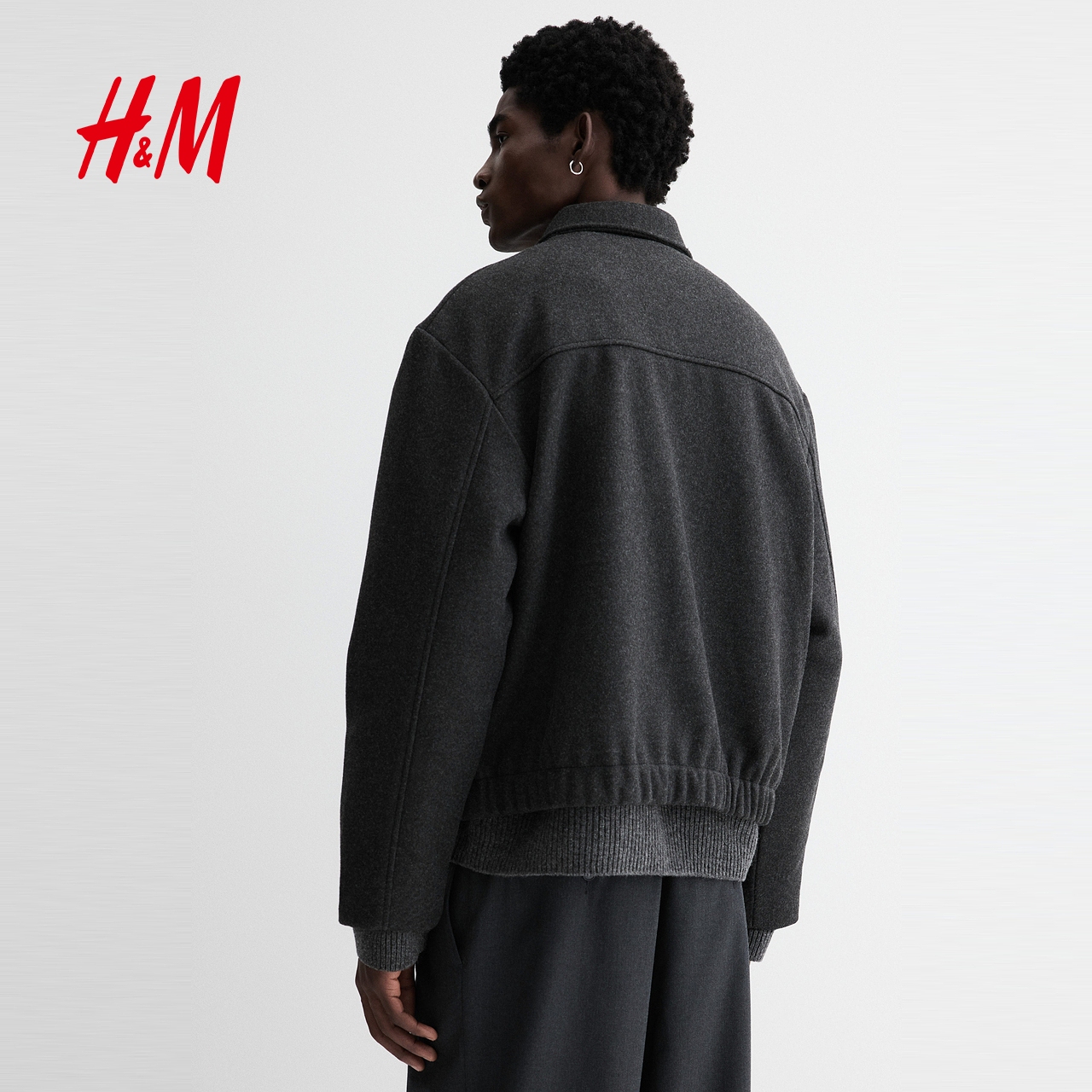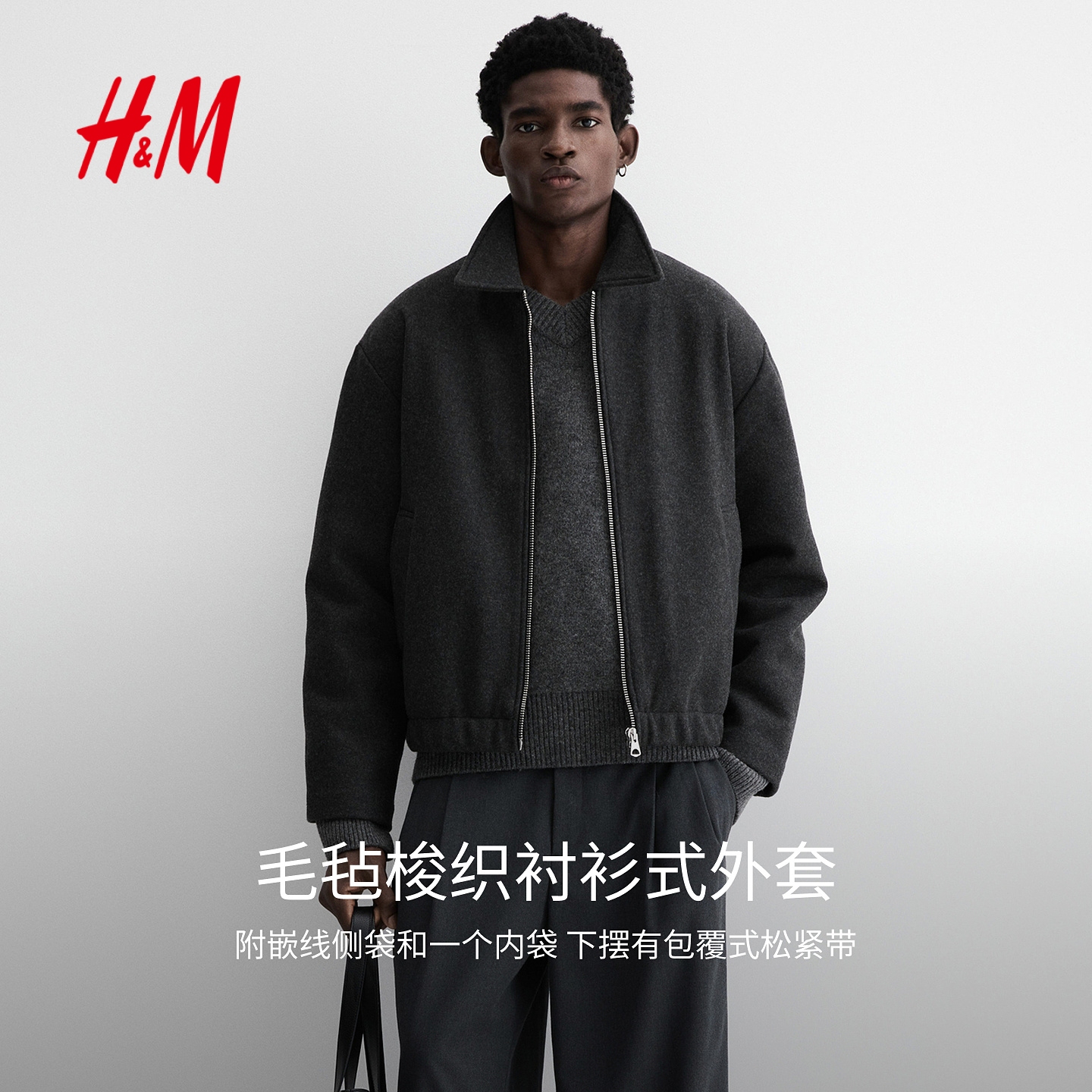 夹克2025年秋季 式 新款 型翻折领毛毡衬衫 外套1295767 标准版 HM男装