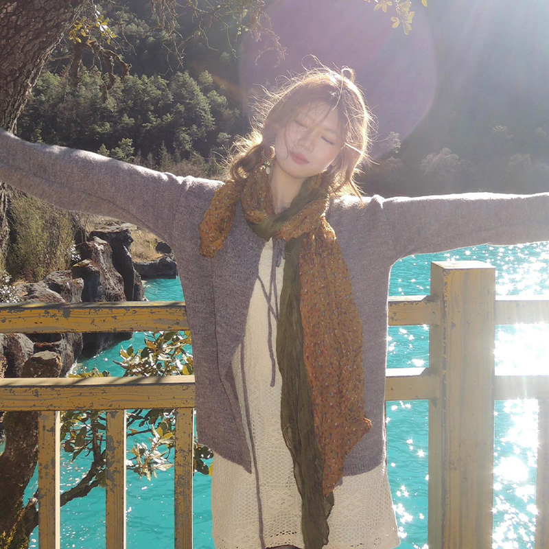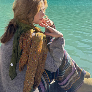 川西旅游棉麻碎花围巾女民族风复古文艺氛围感丝巾大西北披肩围脖