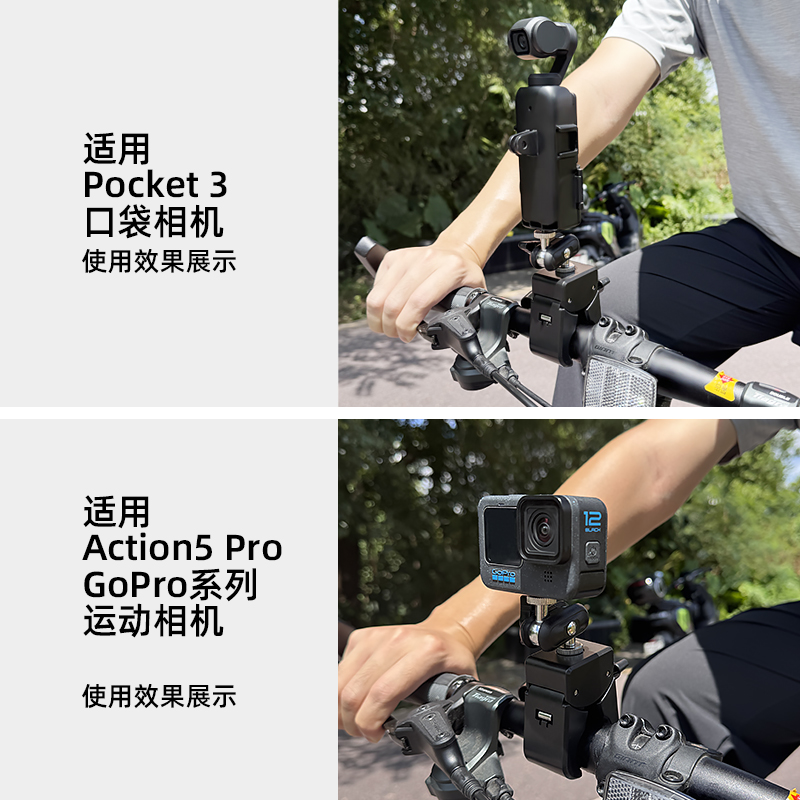 适用于大疆Osmo OsmoAction5 3摩托车自行车骑行支架Gopro相机固定夹大疆DJI 3拍摄支架Vlog大力夹 Pocket