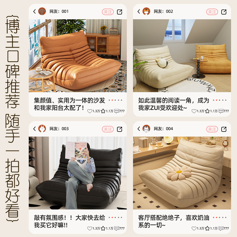 懒人沙发毛毛虫沙发椅阳台躺椅卧室双人单人小沙发榻榻米可躺可睡