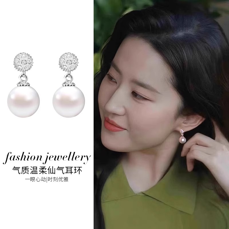 耳饰 爆款 刘亦菲同款 珍珠水钻耳钉女纯银耳夹无耳洞耳环2025年新款