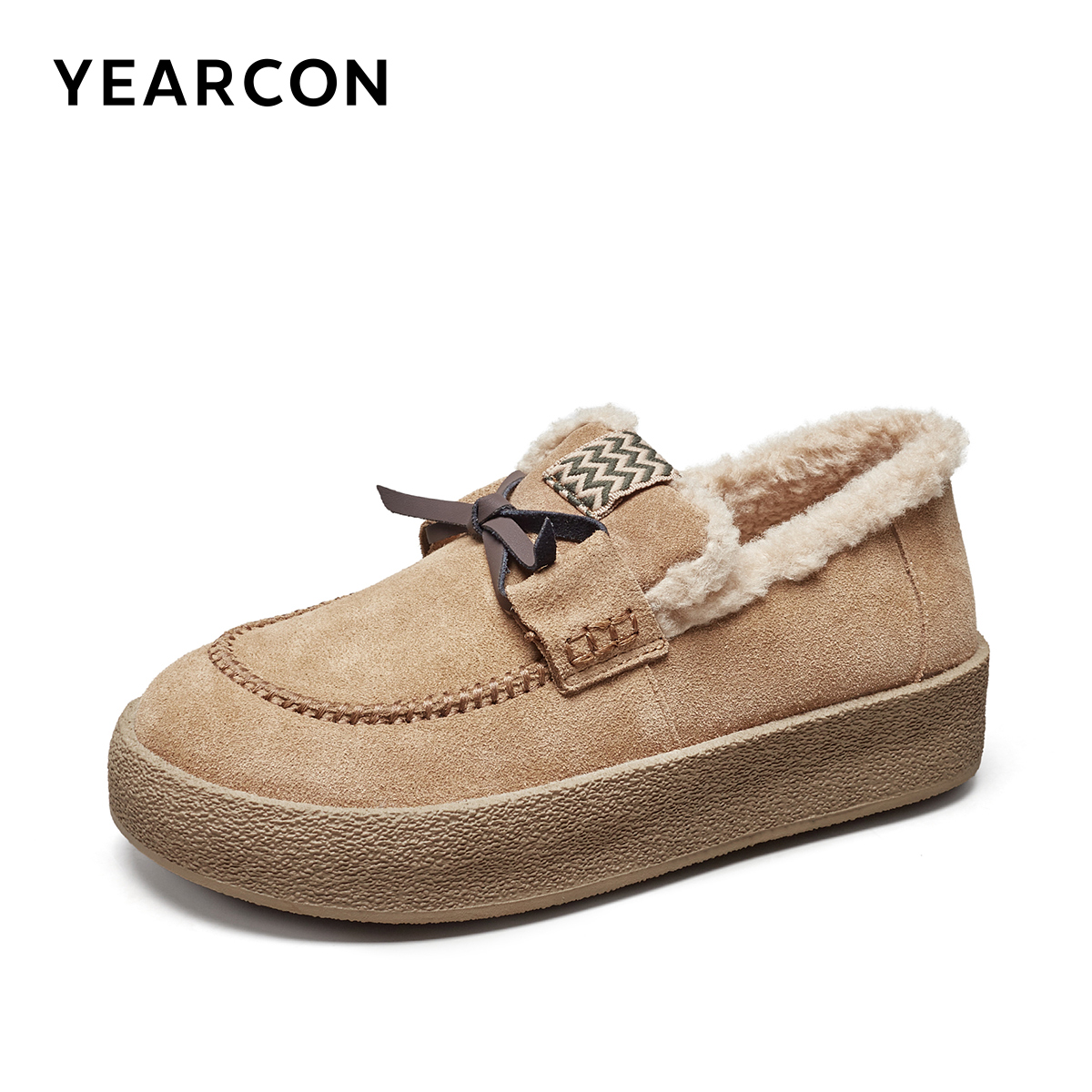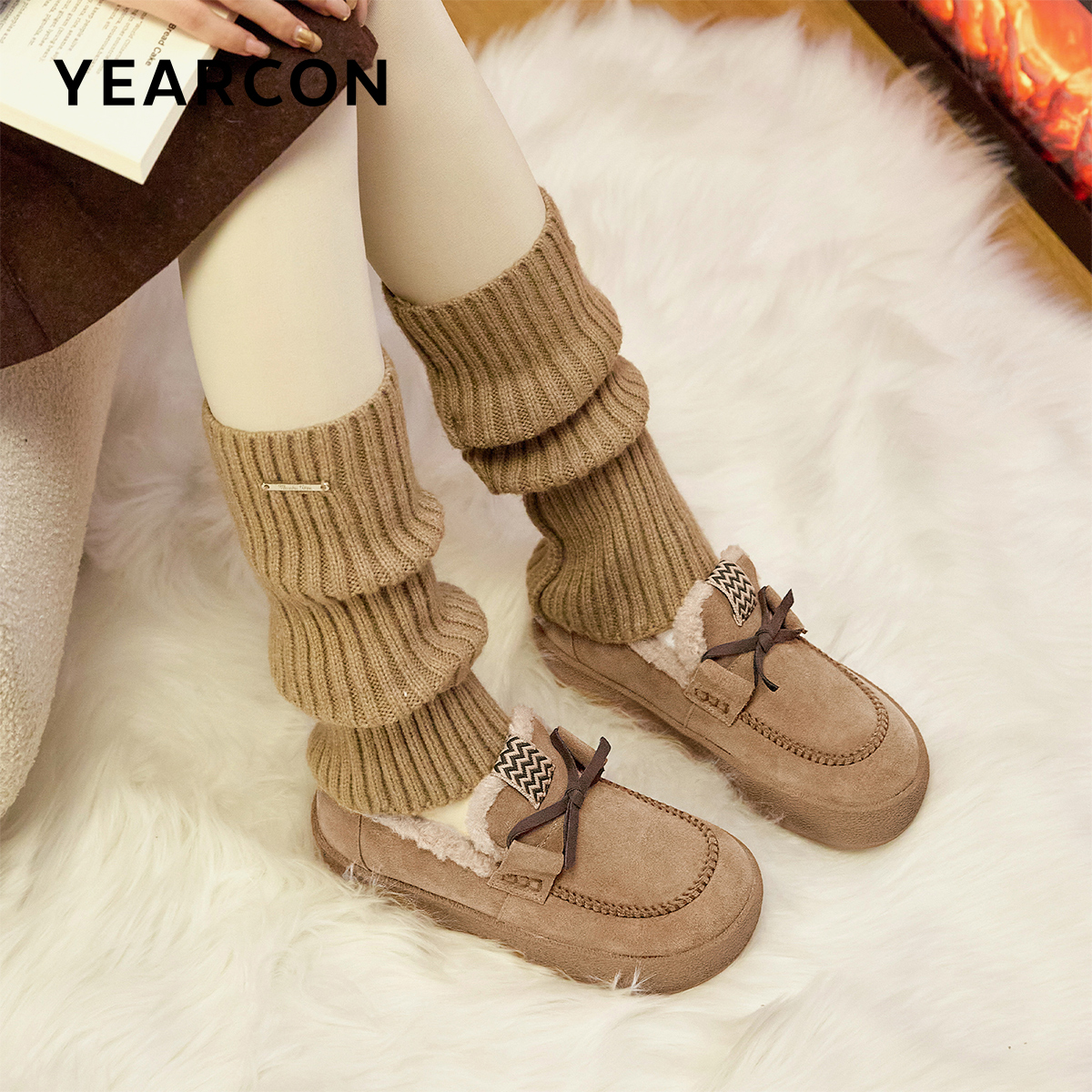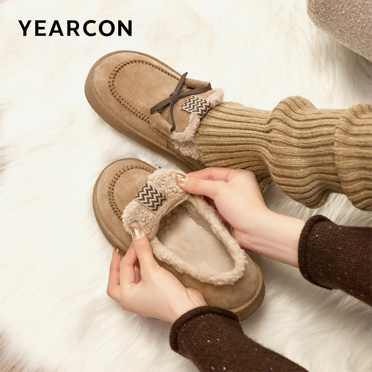 平底雪地靴棉鞋 意尔康女鞋 休闲毛毛鞋 加绒保暖全包勃肯鞋 2025冬季