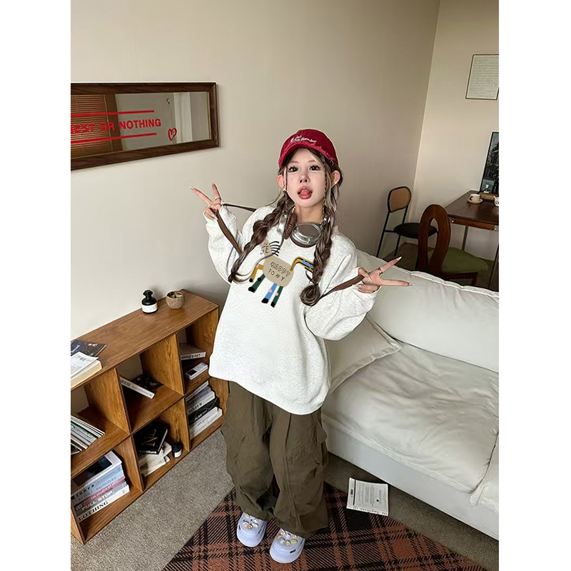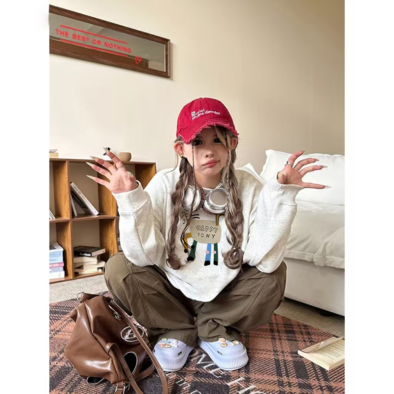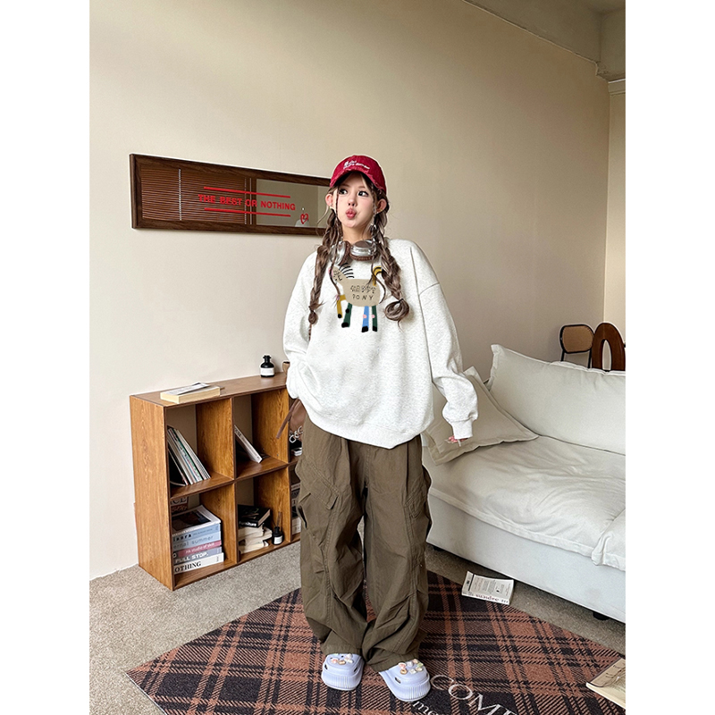 无帽长袖 美式 大码 2025新款 圆领宽松慵懒风早秋上衣女 灰色卫衣女款