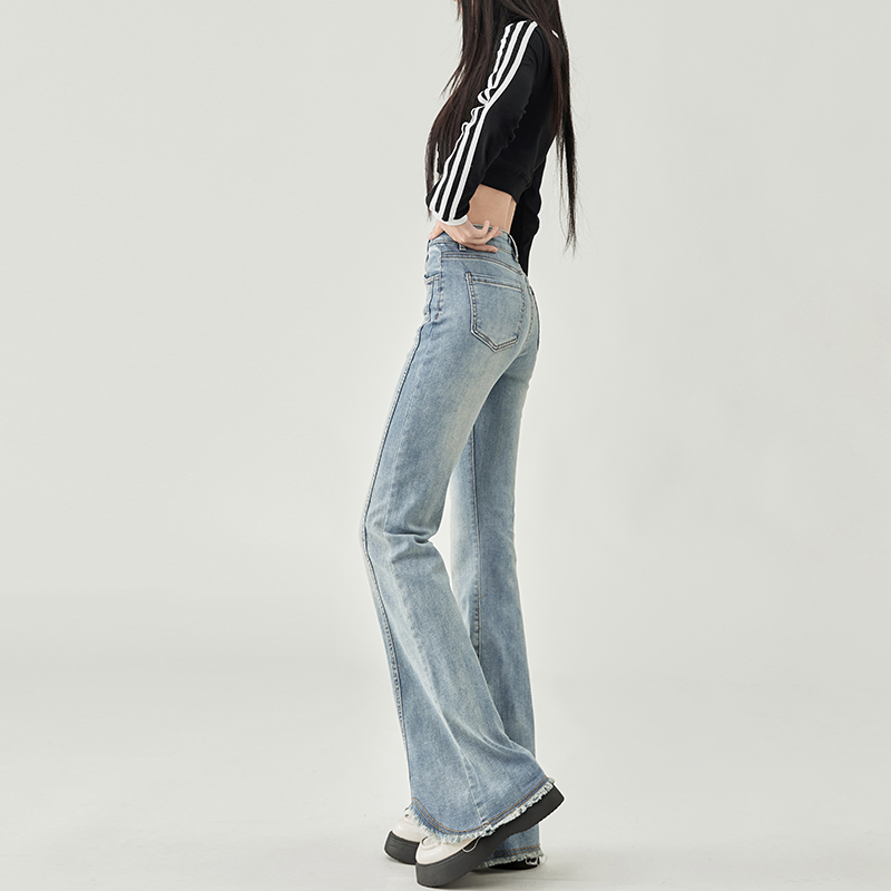 A3HAF1128 中黑水洗牛仔裤 太平鸟高腰阔腿喇叭裤 2025年春夏新款