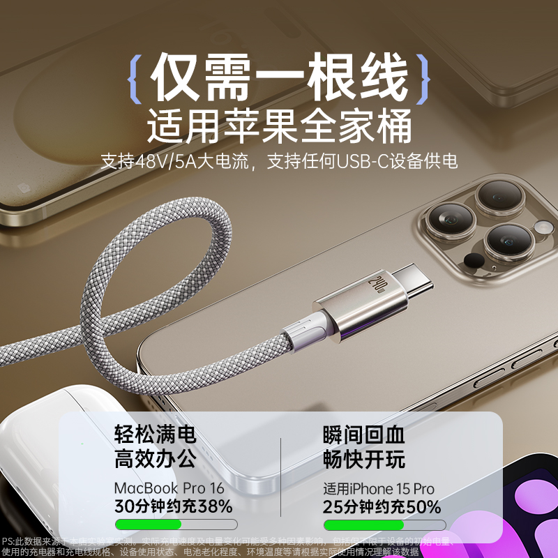 MKO双头typec数据线PD240W快充线双type c口适用iphone17尼龙编织充电线适用苹果华为小米电脑ipad闪充笔记本