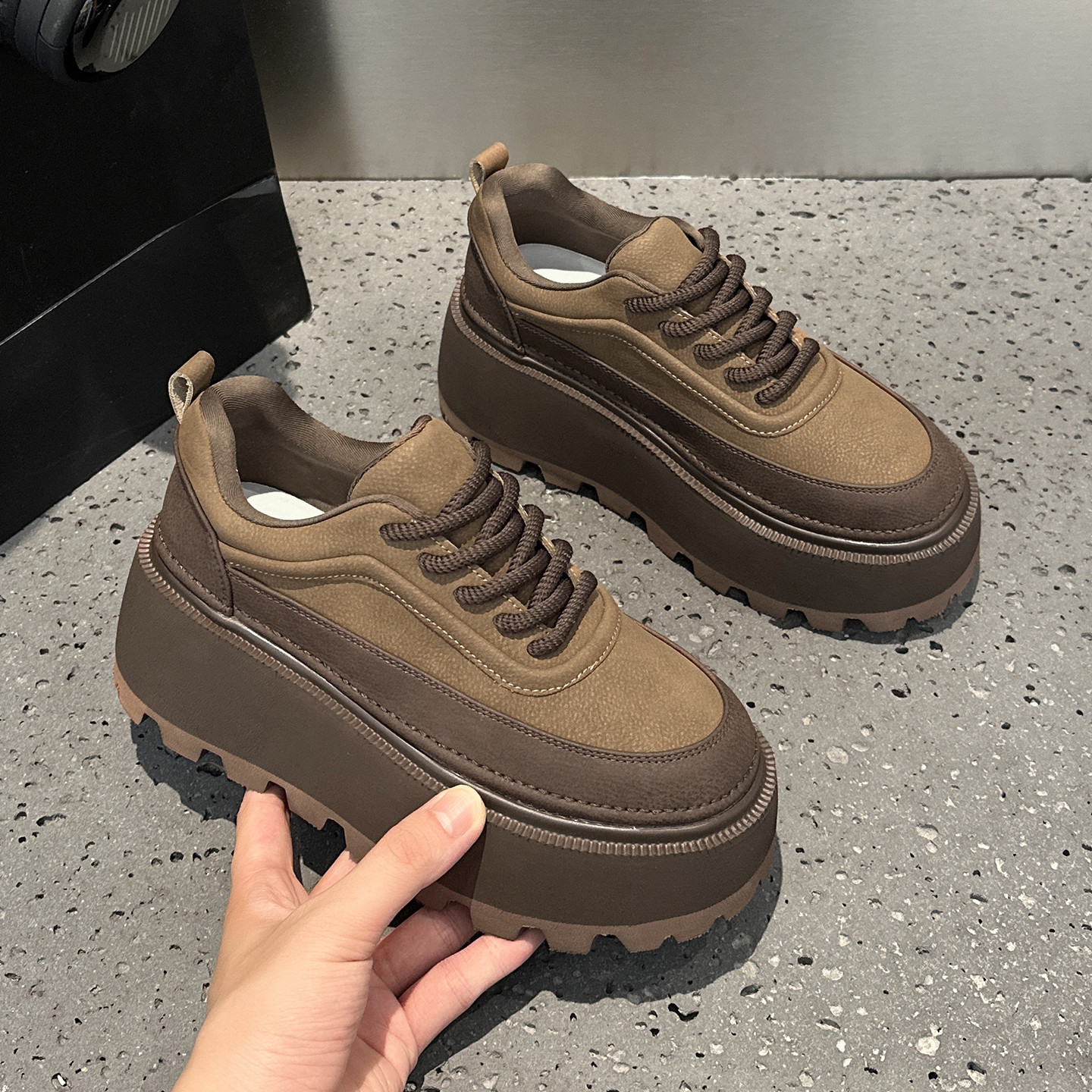 子 厚底增高休闲情侣透气运动鞋 骆驼银月户外复古老爹鞋 女2025新款