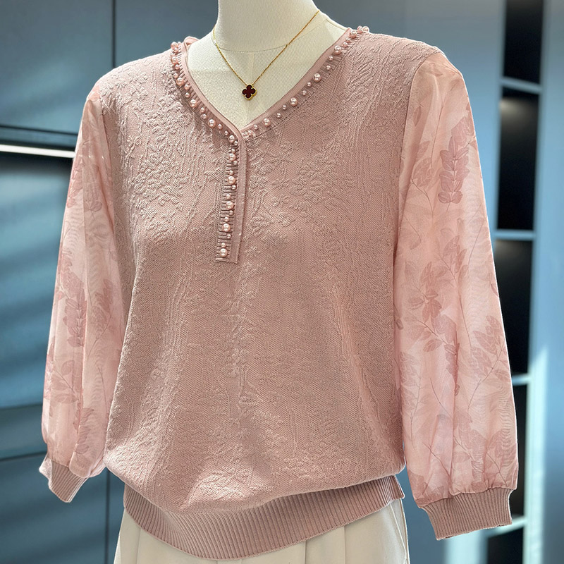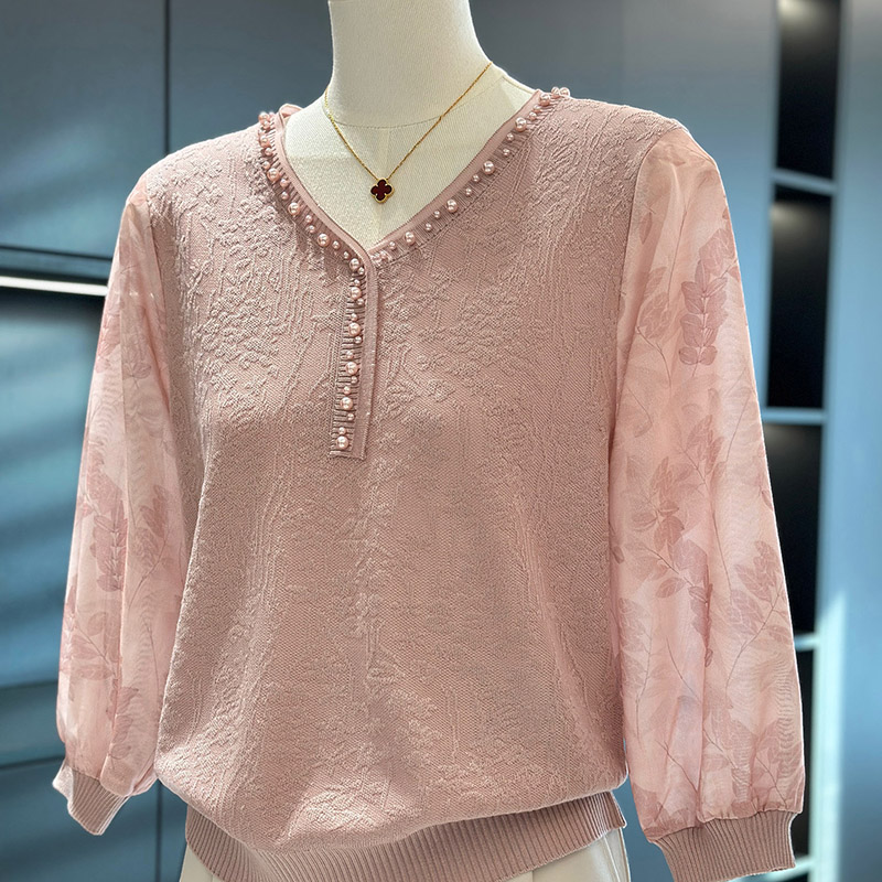 洋气雪纺针织衫 上衣百搭休闲中老年人打底衫 女妈妈装 新款 秋装 时尚