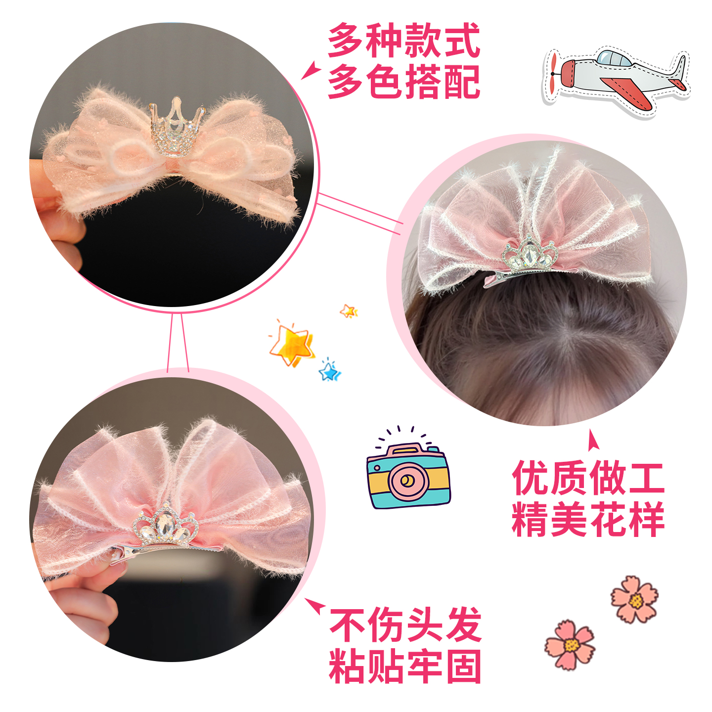 蝴蝶结顶夹儿童发夹甜美公主女童生日头饰发卡皇冠钻石高级感发饰