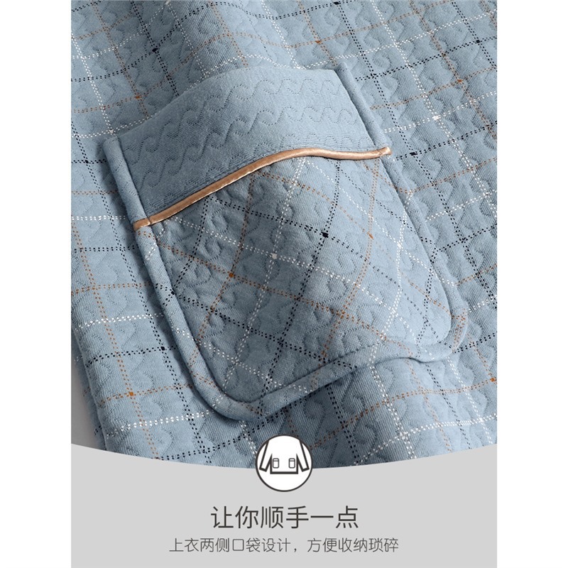 春秋款 薄款 加厚纯棉长袖 冬季 夹棉空气棉夹层 家居服秋冬款 睡衣男士