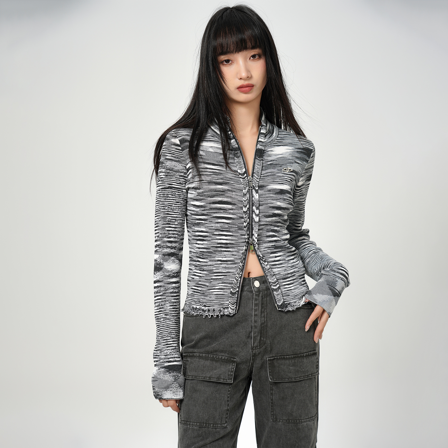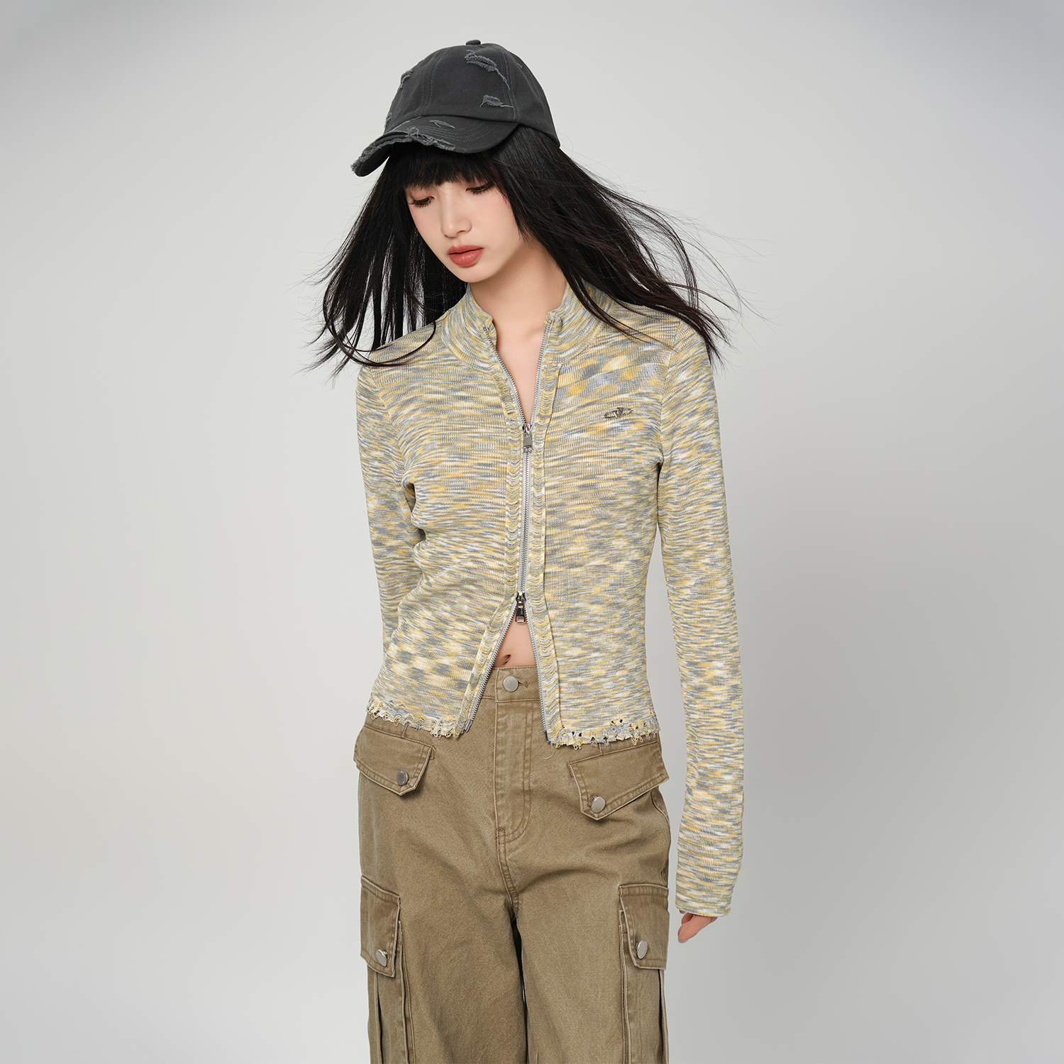 V37重磅立领双开拉链纯色毛衣男秋潮牌cleanfit高级感针织衫 外套