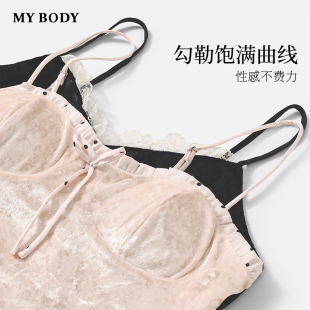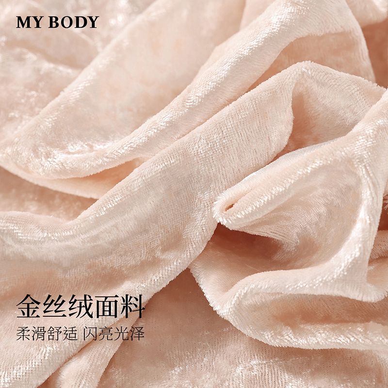 吊带家居套装 金丝绒性感优雅立体荷叶领喇叭袖 MYBODY新款 商场同款