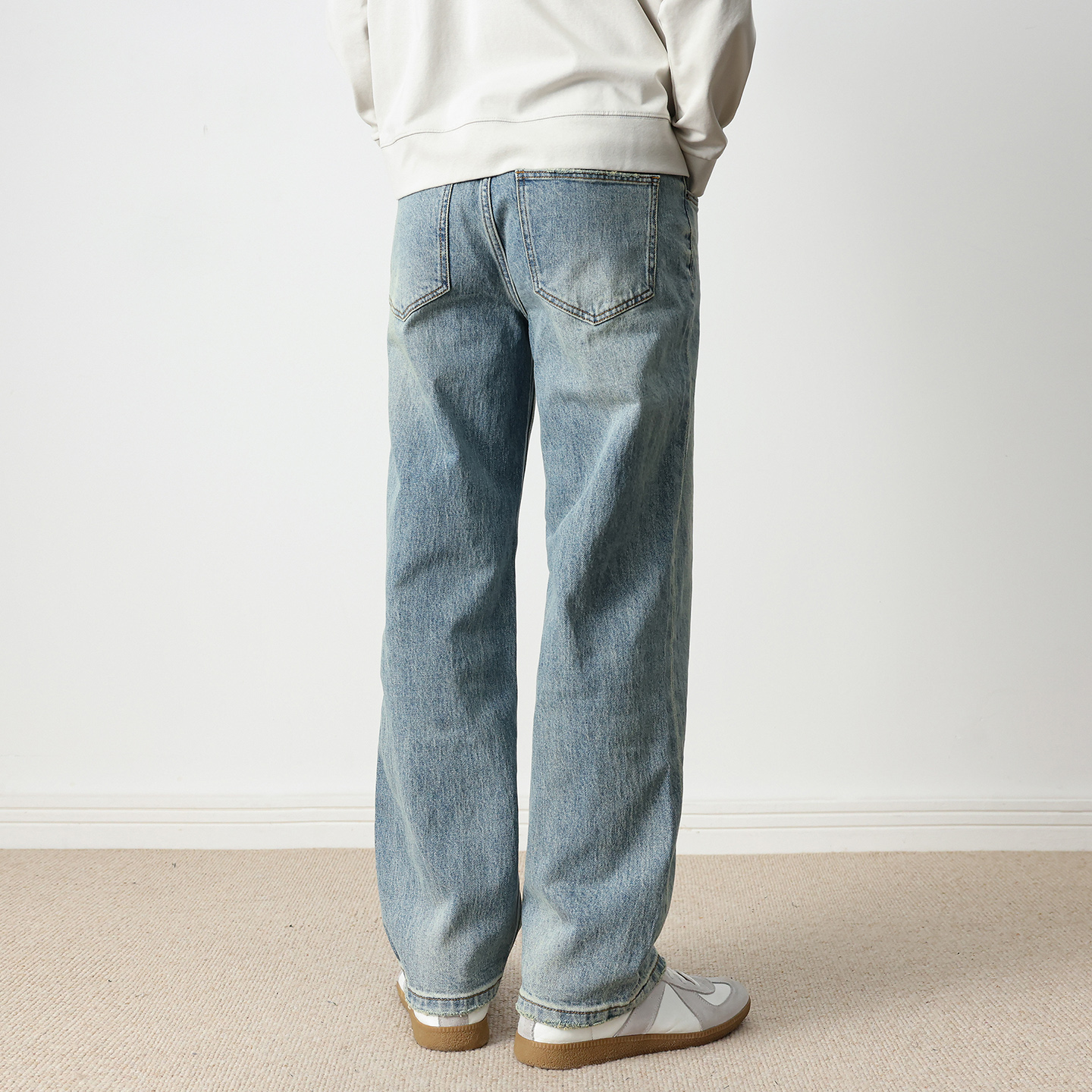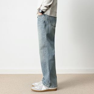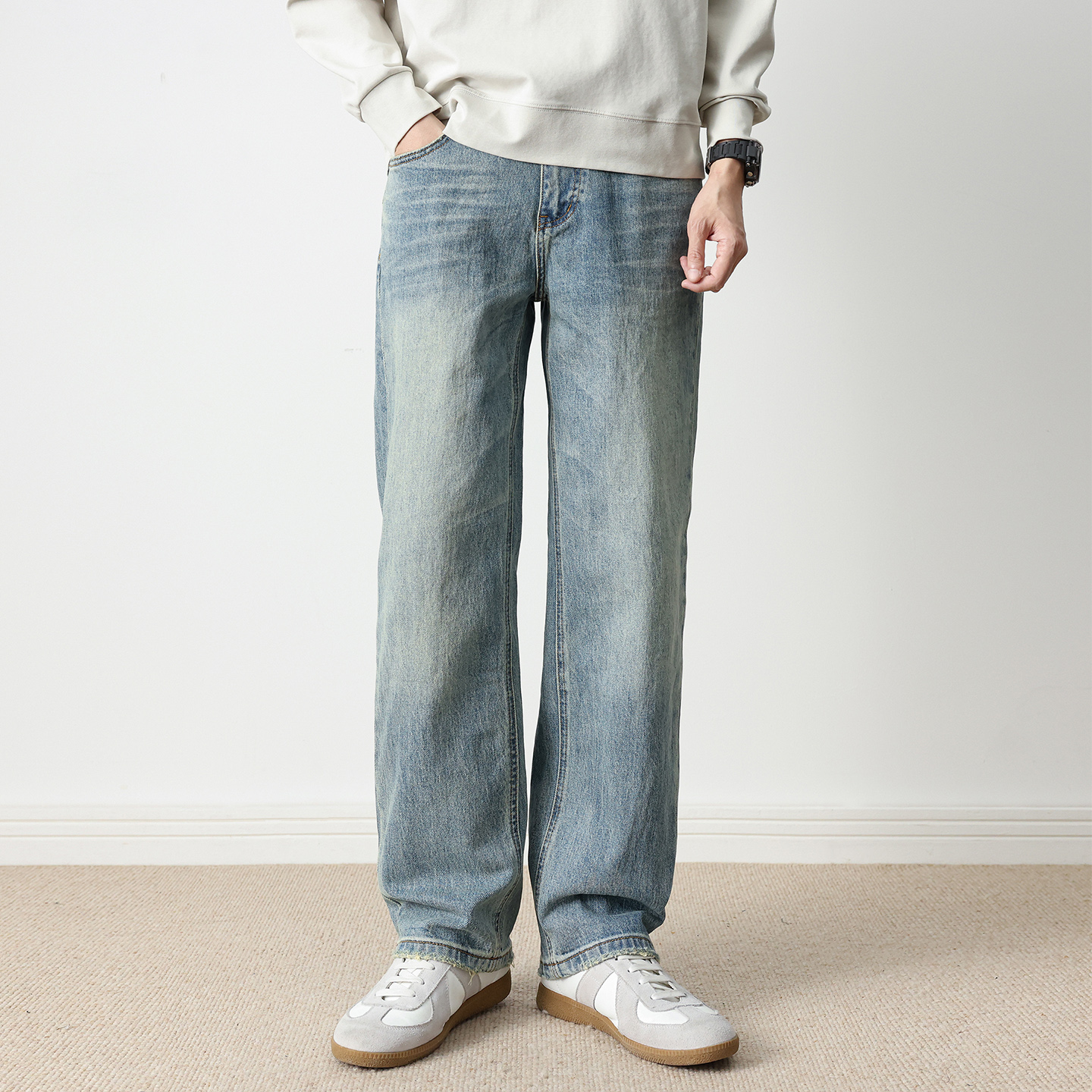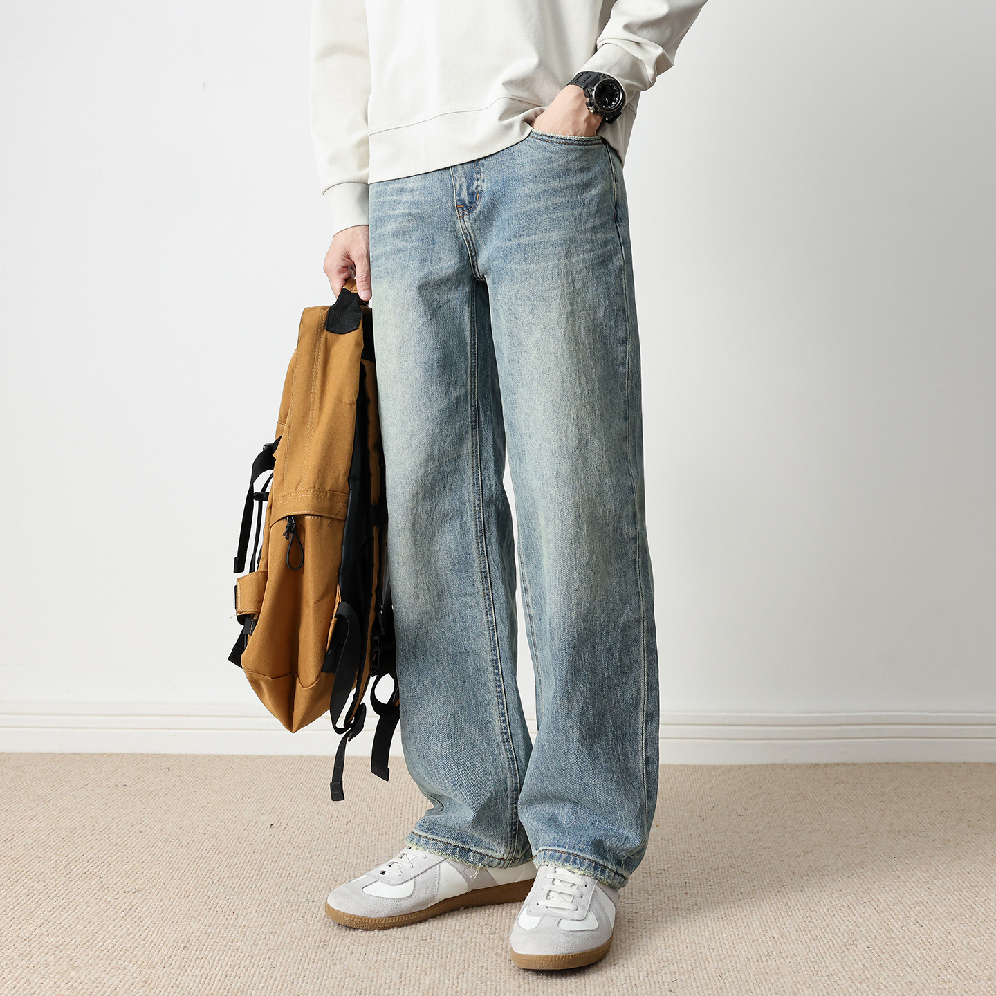 休闲长裤 hansca复古美式 秋季 男宽松直筒2025新款 浅蓝色阔腿牛仔裤